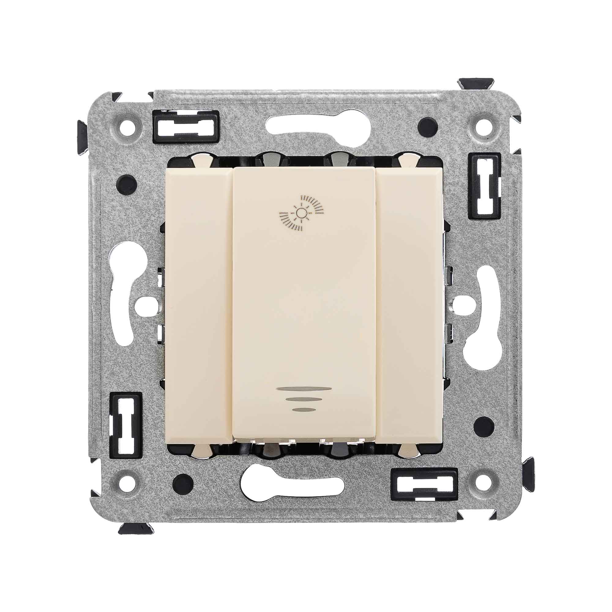 фронту. Выбор режима включения освещения (плавный пуск). Применяются для скрытой установки в стену, механизмы поставляются в комплекте с суппортом. Пластиковые детали электроустановочного изделия имеют оттенок "Ванильная дымка".