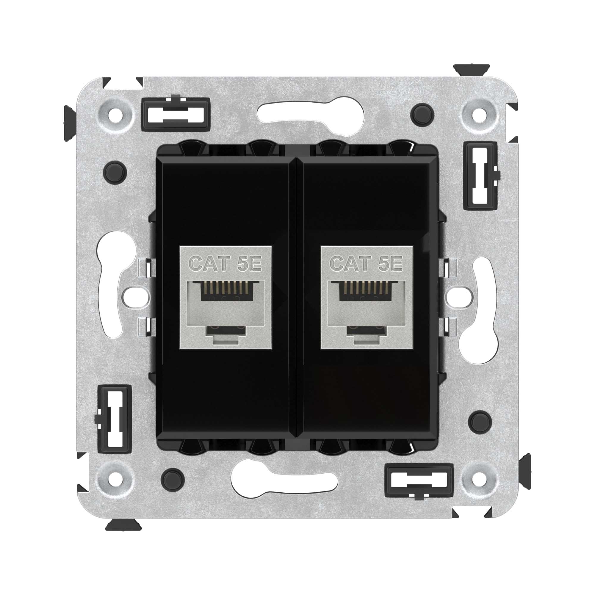 Компьютерная розетка двойная экранированная без шторки используется для подключения компьютерной техники и соединения с патч-панелью. Компьютерная розетка предназначена для скрытого монтажа в стену, поставляется в комплекте с суппортом. Розетка RJ-45 категории 5e – это наиболее популярная на сегодняшний день модель. Она позволяет организовать сеть с частотой 125 МГц и скоростью до 1000 Мбит/с. Материал – металл, термопласт. Пластиковые детали устройства имеют оттенок "Черный квадрат".
