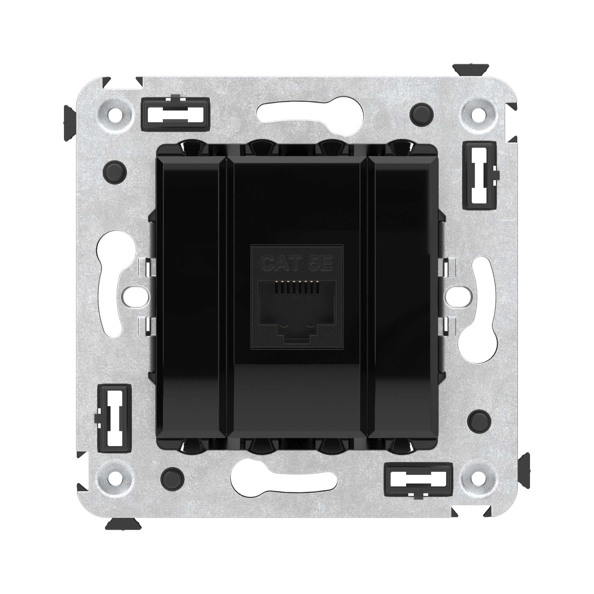 Компьютерная розетка без шторки используется для подключения компьютерной техники и соединения с патч-панелью. Компьютерная розетка предназначена для скрытого монтажа в стену, поставляется в комплекте с суппортом. Розетка RJ-45 категории 5e – это наиболее популярная на сегодняшний день модель. Она позволяет организовать сеть с частотой 125 МГц и скоростью до 1000 Мбит/с. Материал – металл, термопласт. Пластиковые детали устройства имеют оттенок "Черный квадрат".