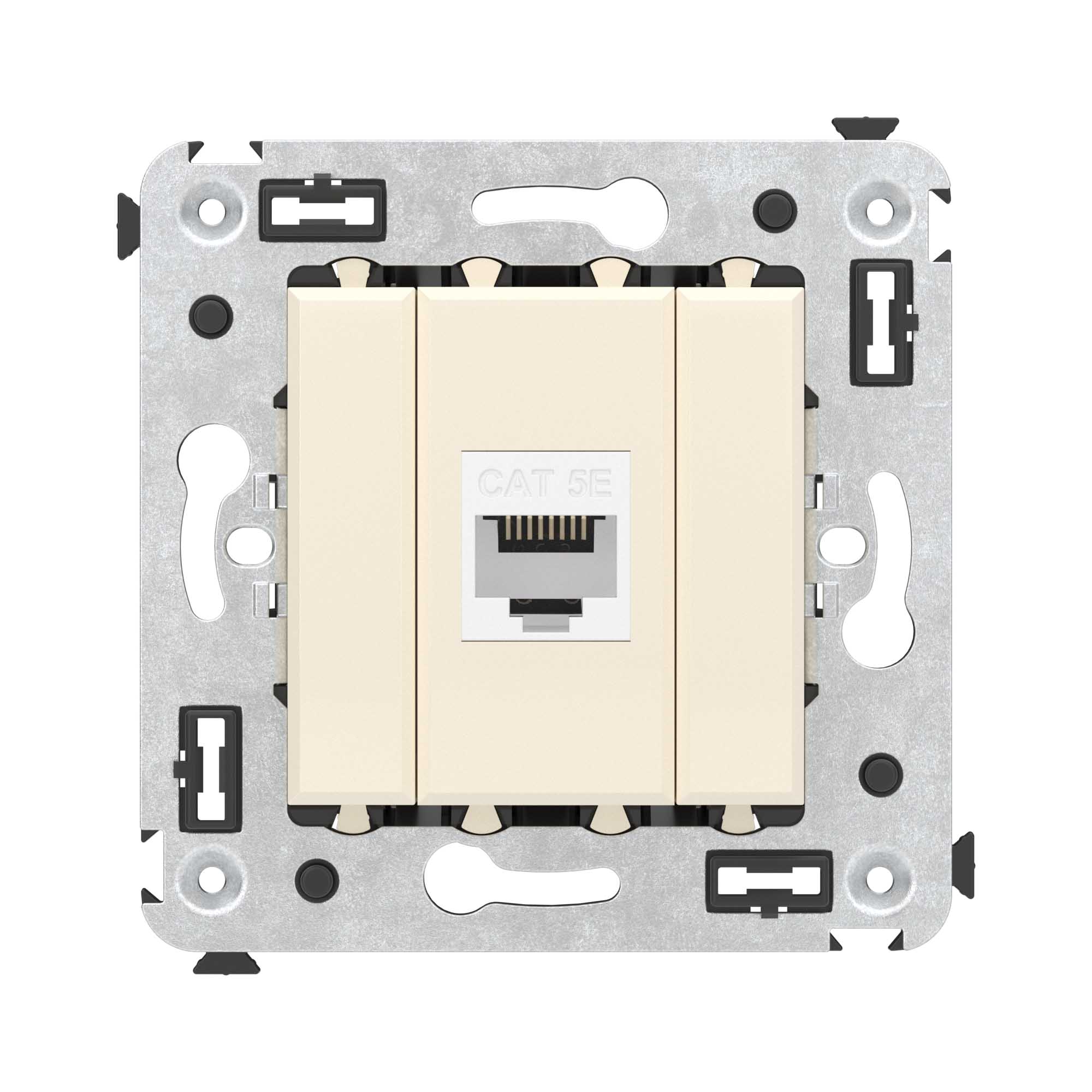 Компьютерная розетка без шторки используется для подключения компьютерной техники и соединения с патч-панелью. Компьютерная розетка предназначена для скрытого монтажа в стену, поставляется в комплекте с суппортом. Розетка RJ-45 категории 5e – это наиболее популярная на сегодняшний день модель. Она позволяет организовать сеть с частотой 125 МГц и скоростью до 1000 Мбит/с. Материал – металл, термопласт. Пластиковые детали устройства имеют оттенок "Ванильная дымка".