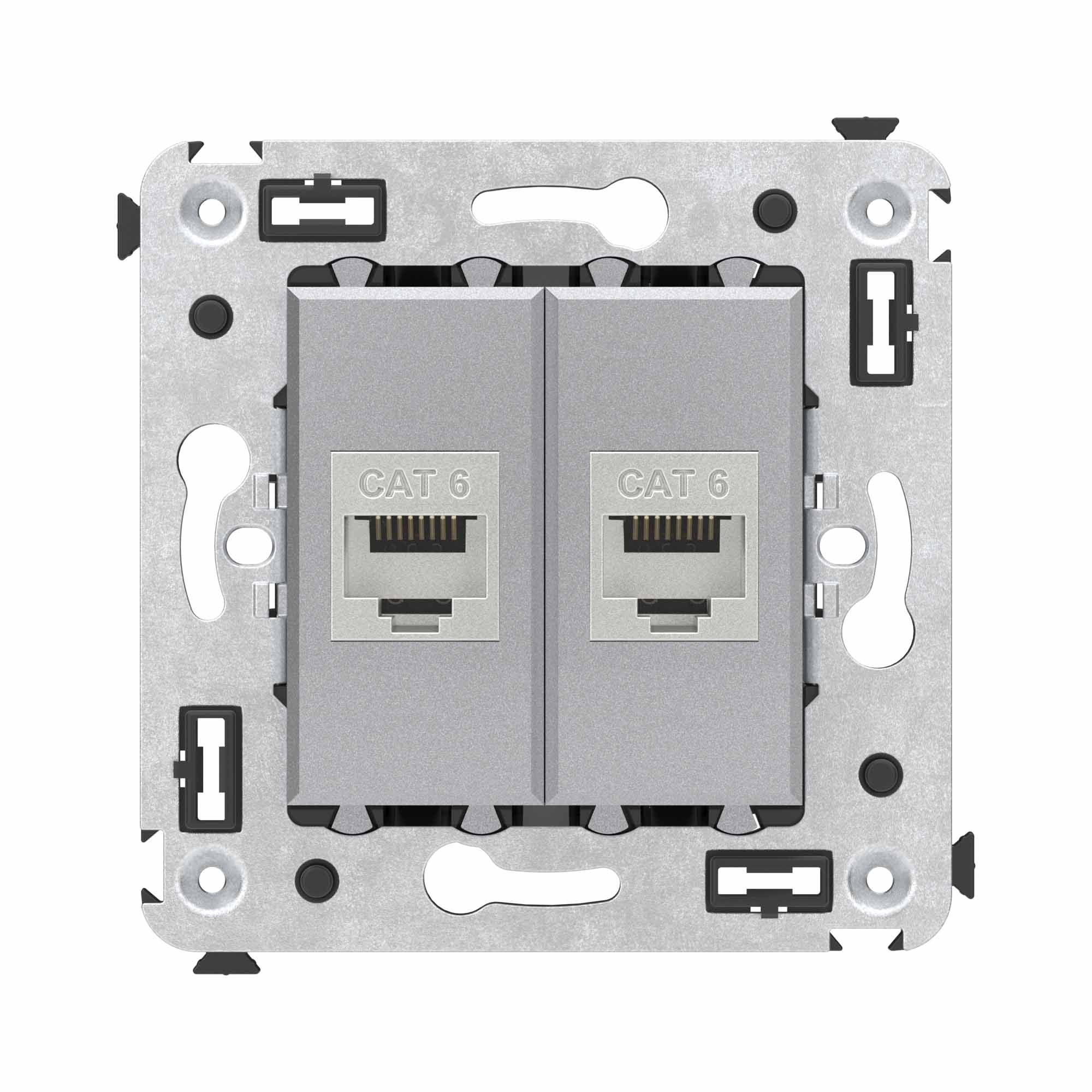 Компьютерная розетка двойная экранированная используется для подключения компьютерной техники и соединения с патч-панелью, предназначена для скрытого монтажа в стену, поставляется в комплекте с суппортом. Розетка RJ-45 категории 6 может использоваться для организации сетей с частотой до 250 МГц и передавать данные на большие расстояния. Материал розетки – металл, термопласт. Пластиковые детали изделия выполнены в цвете "Закаленная сталь".