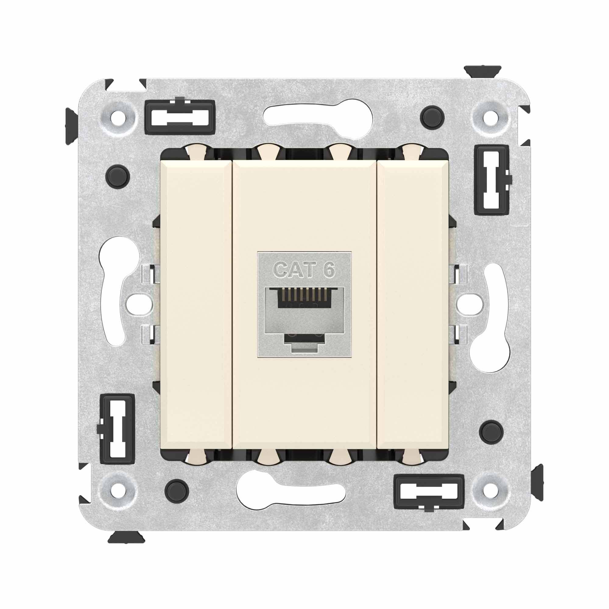 Компьютерная розетка без шторки экранированная используется для подключения компьютерной техники и соединения с патч-панелью, предназначена для скрытого монтажа в стену, поставляется в комплекте с суппортом. Розетка RJ-45 категории 6 может использоваться для организации сетей с частотой до 250 МГц и передавать данные на большие расстояния. Материал розетки – металл, термопласт. Пластиковые детали изделия выполнены в цвете "Ванильная дымка".