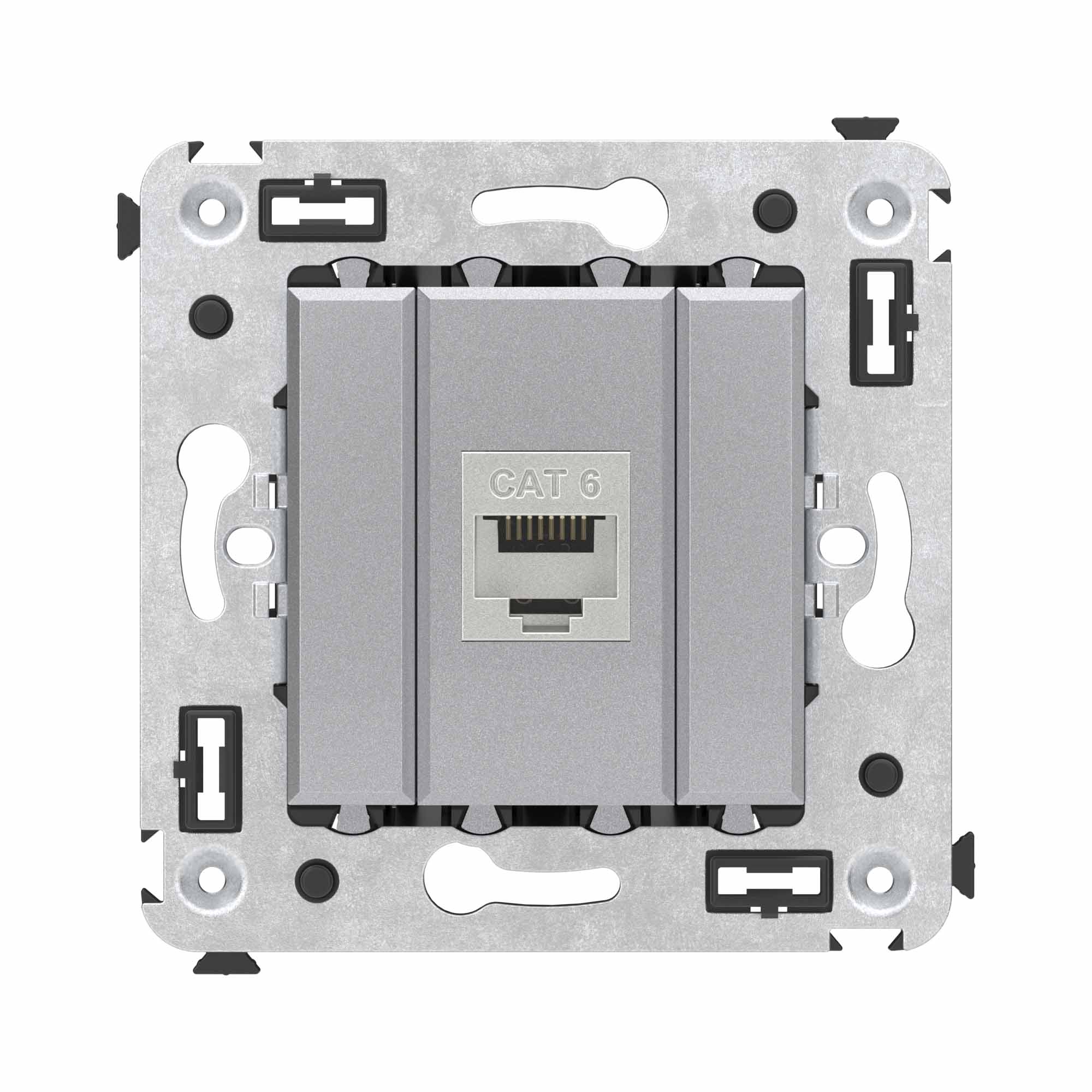 Компьютерная розетка экранированная используется для подключения компьютерной техники и соединения с патч-панелью, предназначена для скрытого монтажа в стену, поставляется в комплекте с суппортом. Розетка RJ-45 категории 6 может использоваться для организации сетей с частотой до 250 МГц и передавать данные на большие расстояния. Материал розетки – металл, термопласт. Пластиковые детали изделия выполнены в цвете "Закаленная сталь".