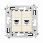 Компьютерная розетка двойная без шторки используется для подключения компьютерной техники и соединения с патч-панелью. Предназначена для скрытого монтажа в стену, поставляется в комплекте с суппортом. Розетка RJ-45 категории 6А может использоваться для организации сетей с частотой до 500 МГц и передавать данные до 10 Гбит/с. Материал розетки – металл, термопласт. Пластиковые детали изделия выполнены в цвете "Ванильная дымка".
