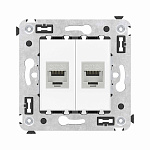 Компьютерная розетка двойная экранированная без шторки используется для подключения компьютерной техники и соединения с патч-панелью. Предназначена для скрытого монтажа в стену, поставляется в комплекте с суппортом. Розетка RJ-45 категории 6А может использоваться для организации сетей с частотой до 500 МГц и передавать данные до 10 Гбит/с. Материал розетки – металл, термопласт. Пластиковые детали изделия выполнены в цвете "Белое облако".