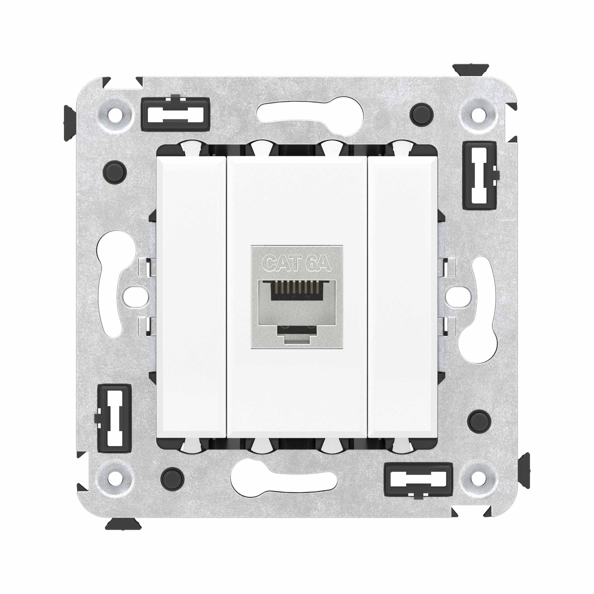 Компьютерная розетка экранированная без шторки используется для подключения компьютерной техники и соединения с патч-панелью. Предназначена для скрытого монтажа в стену, поставляется в комплекте с суппортом. Розетка RJ-45 категории 6А может использоваться для организации сетей с частотой до 500 МГц и передавать данные до 10 Гбит/с. Материал розетки – металл, термопласт. Пластиковые детали изделия выполнены в цвете "Белое облако".