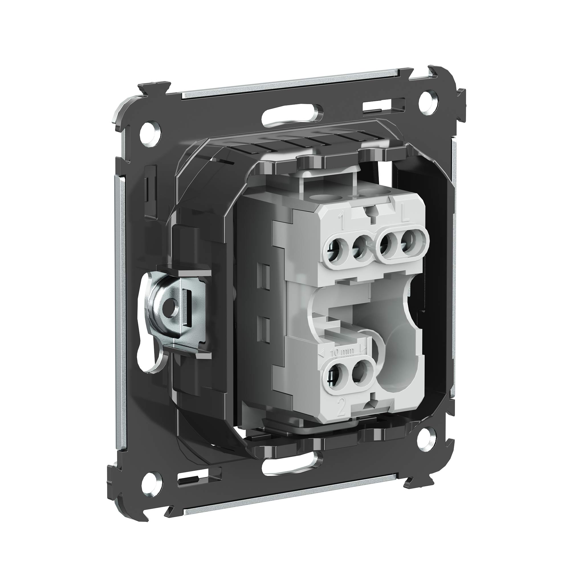 Задача переключателя – управление освещением из двух точек. Он позволяет включить/выключить свет из удобной точки – например, в спальне переключатель может размещаться возле кровати. Переключатель предназначен для скрытого монтажа в стену. Номинальное напряжение – 230 В, номинальный ток – 16 А.