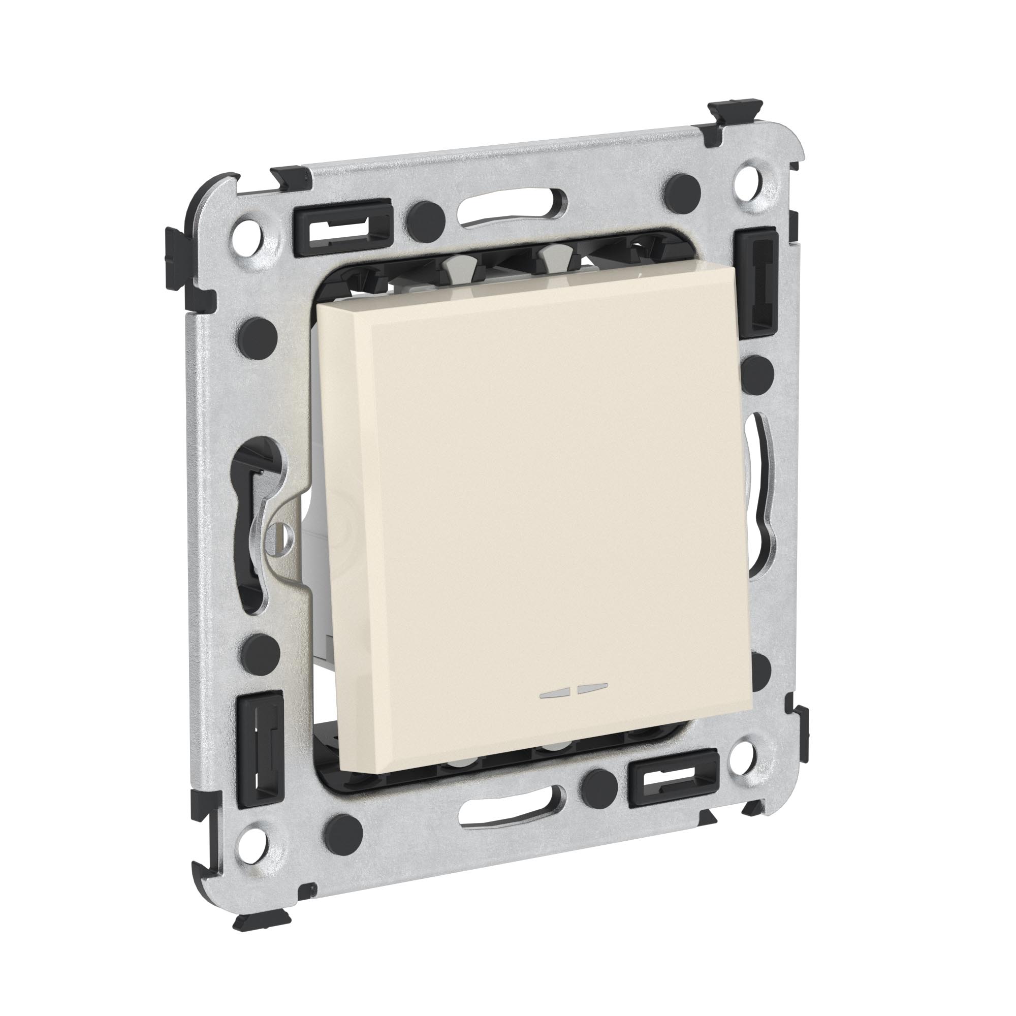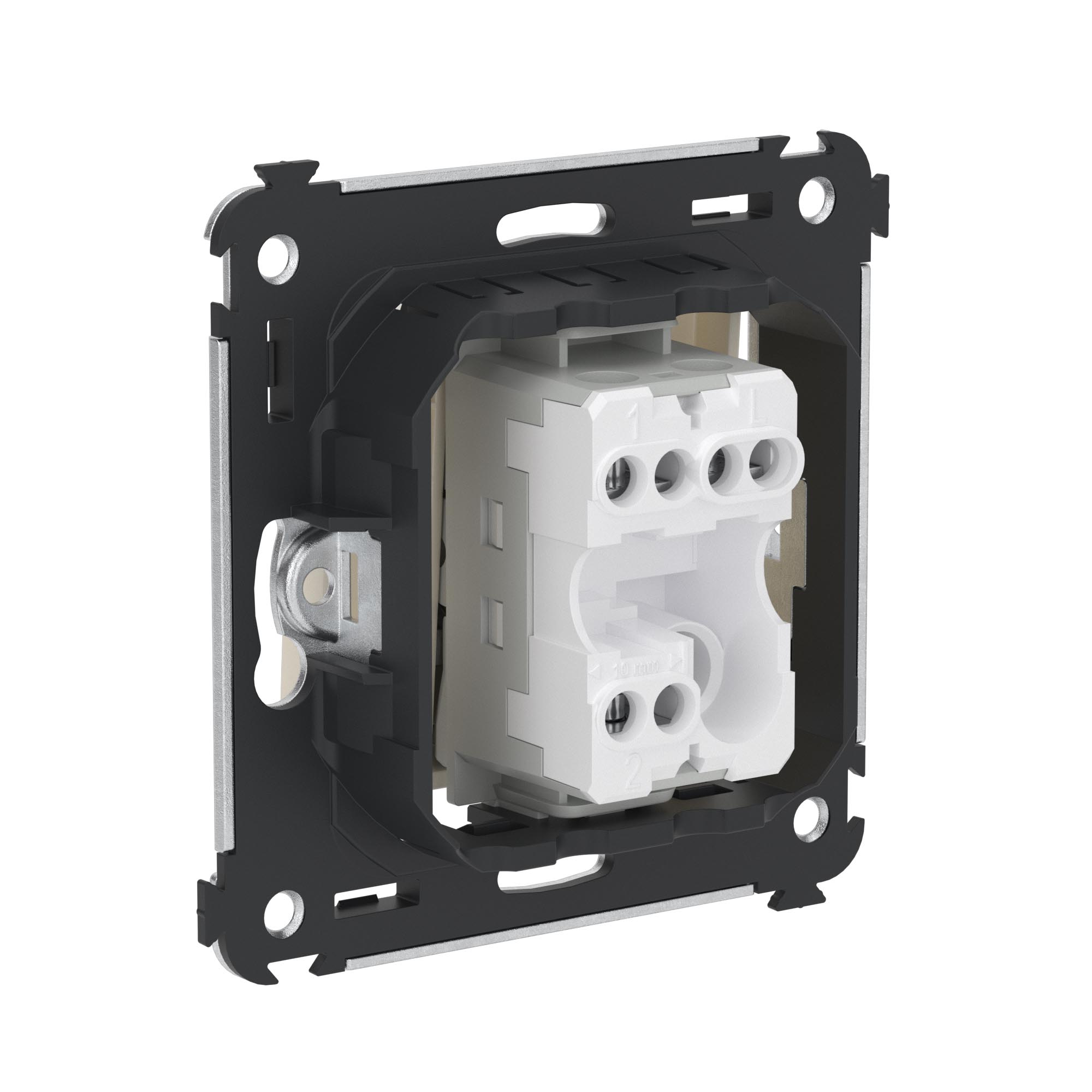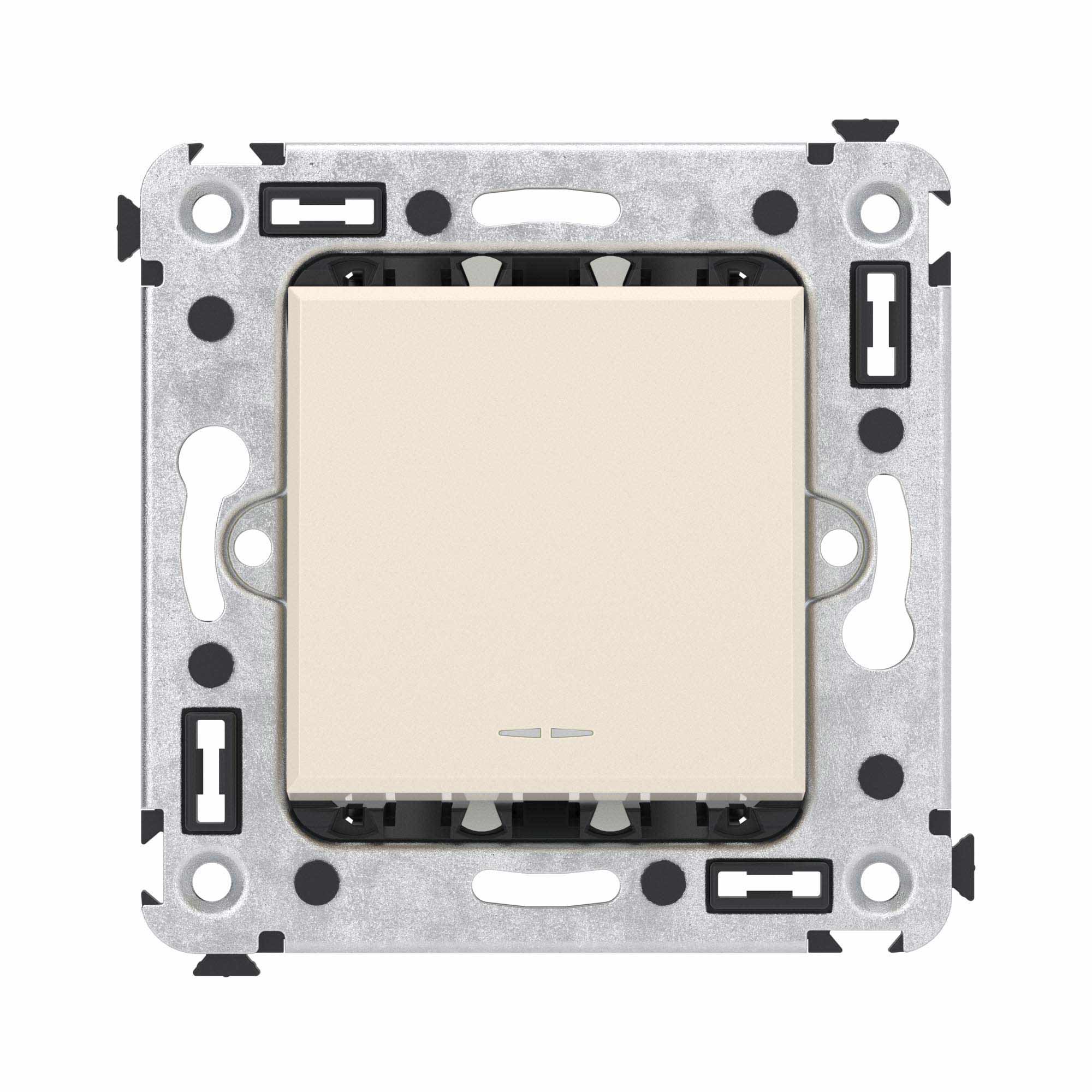 Задача одноклавишного переключателя – управление двумя контурами освещения из одного места. Он позволяет включить/выключить свет из удобной точки – например, в спальне переключатель может размещаться возле кровати. Переключатель предназначен для скрытого монтажа в стену. Номинальное напряжение – 230 В, номинальный ток – 16 А.