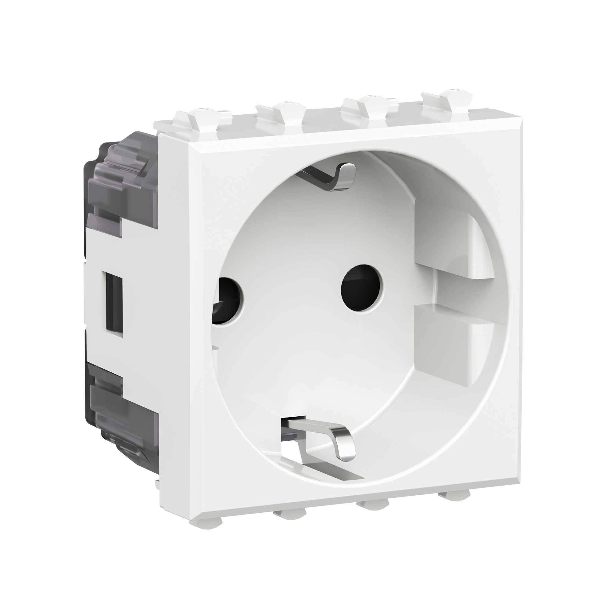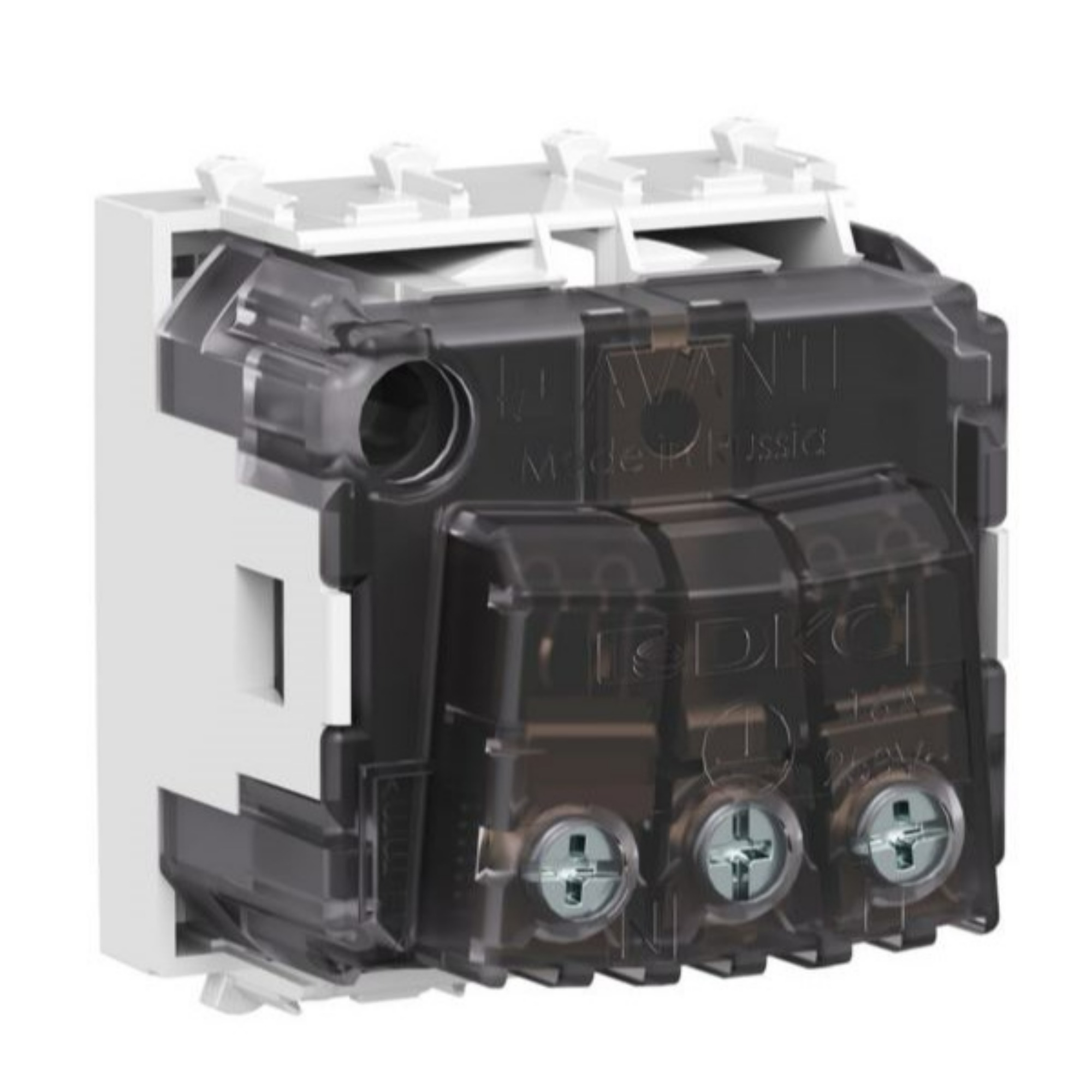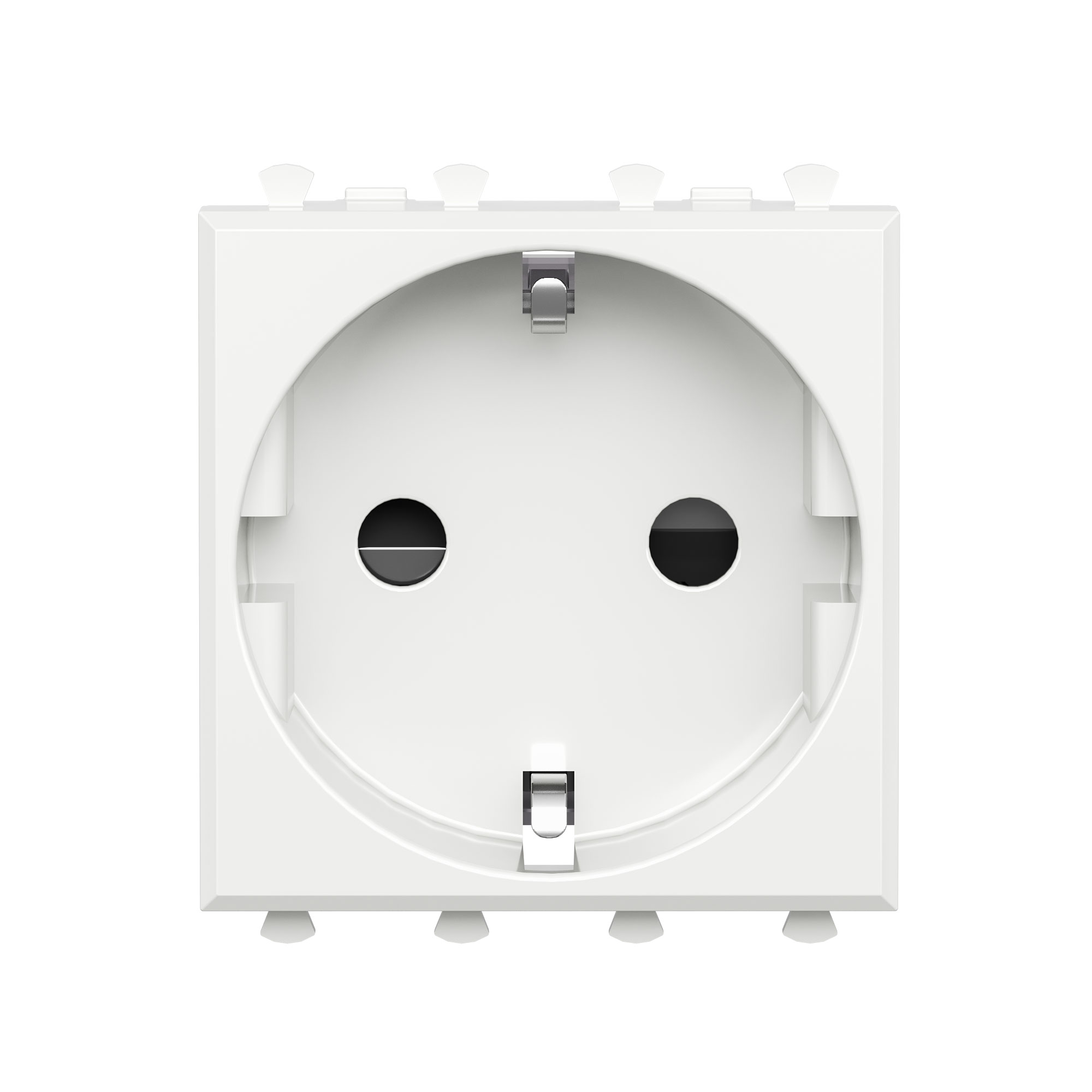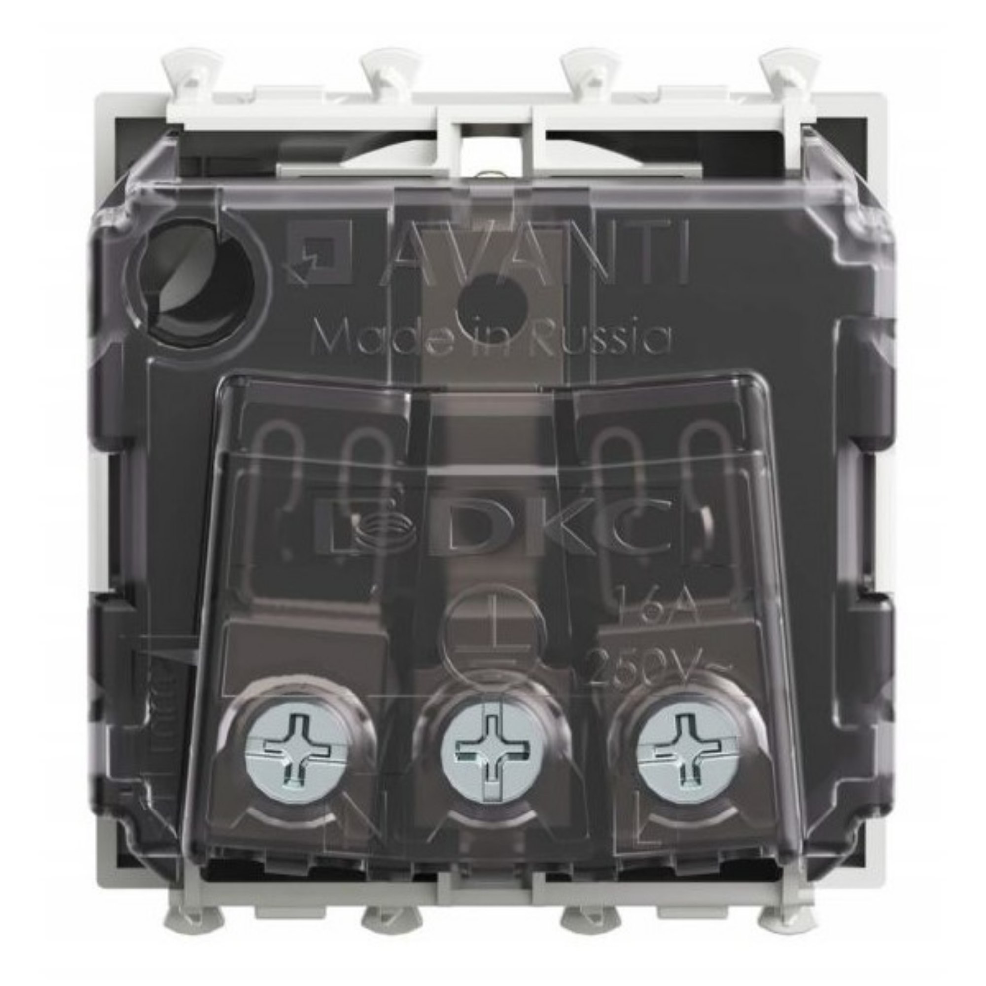 Розетка электрическая с заземлением, со шторками и возможностью установки подсветки, модульная. Предназначена для монтажа в систему пластиковых коробов «In-liner Front» и систему организации рабочих мест «Сотто» (Sotto) при помощи рамок-суппортов и каркасов «Avanti» (код 4400912 и т. д.). Характеристики: диаметр отверстий для ввода кабелей — 3 мм (по 2 отверстия на одну клемму); винтовые зажимы; защитные шторки; шаблон для зачистки кабеля — 11 мм; номинальный ток — 16 A; номинальное напряжение — 230 В; фиксация в подрозеточные коробки глубиной не менее 45 мм при помощи каркаса с лапками (код 4400802) и саморезов. 2 модуля. Цвет: «Белое облако». Производитель оставляет за собой право вносить во внешний вид изделия изменения, которые не влияют на его функционал, безопасность и надёжность.
