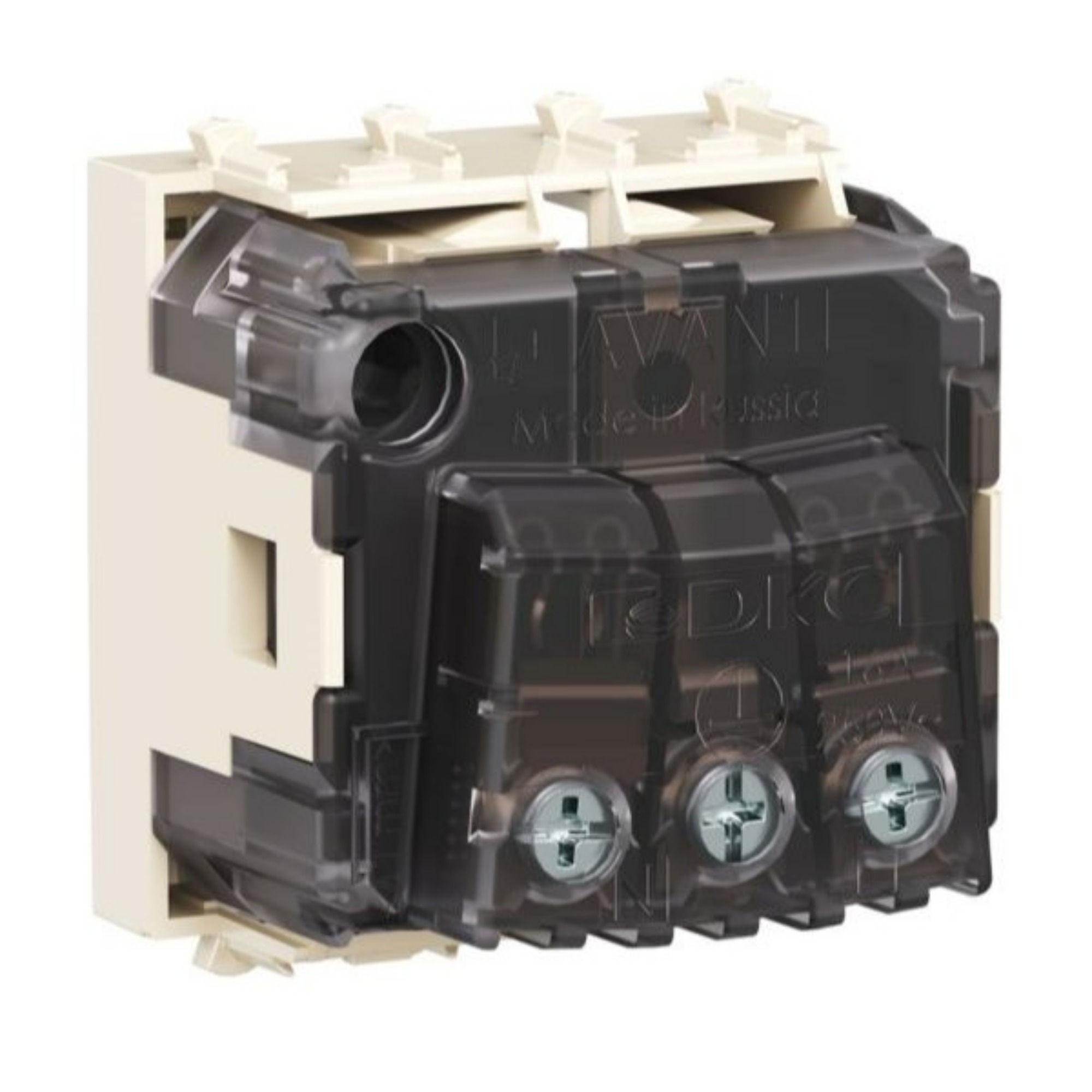 Розетка электрическая с заземлением, со шторками и возможностью установки подсветки, модульная. Предназначена для монтажа в систему кабельных коробов «In-liner Front» и систему организации рабочих мест «Сотто» (Sotto) (алюминиевые кабель-каналы, колонны, башенки и лючки) при помощи рамок-суппортов и каркасов «Avanti» (код 4400912 и т. д.). Характеристики: диаметр отверстий для ввода кабелей — 3 мм (по 2 отверстия на одну клемму); винтовые зажимы; защитные шторки; шаблон для зачистки кабеля — 11 мм; номинальный ток — 16 A; номинальное напряжение — 230 В. Изделие устанавливается в подрозеточные коробки глубиной не менее 45 мм при помощи каркаса с лапками (код 4400802) и саморезов. 2 модуля. Цвет: «Белое облако». Производитель оставляет за собой право вносить во внешний вид изделия изменения, которые не влияют на его функционал, безопасность и надёжность.