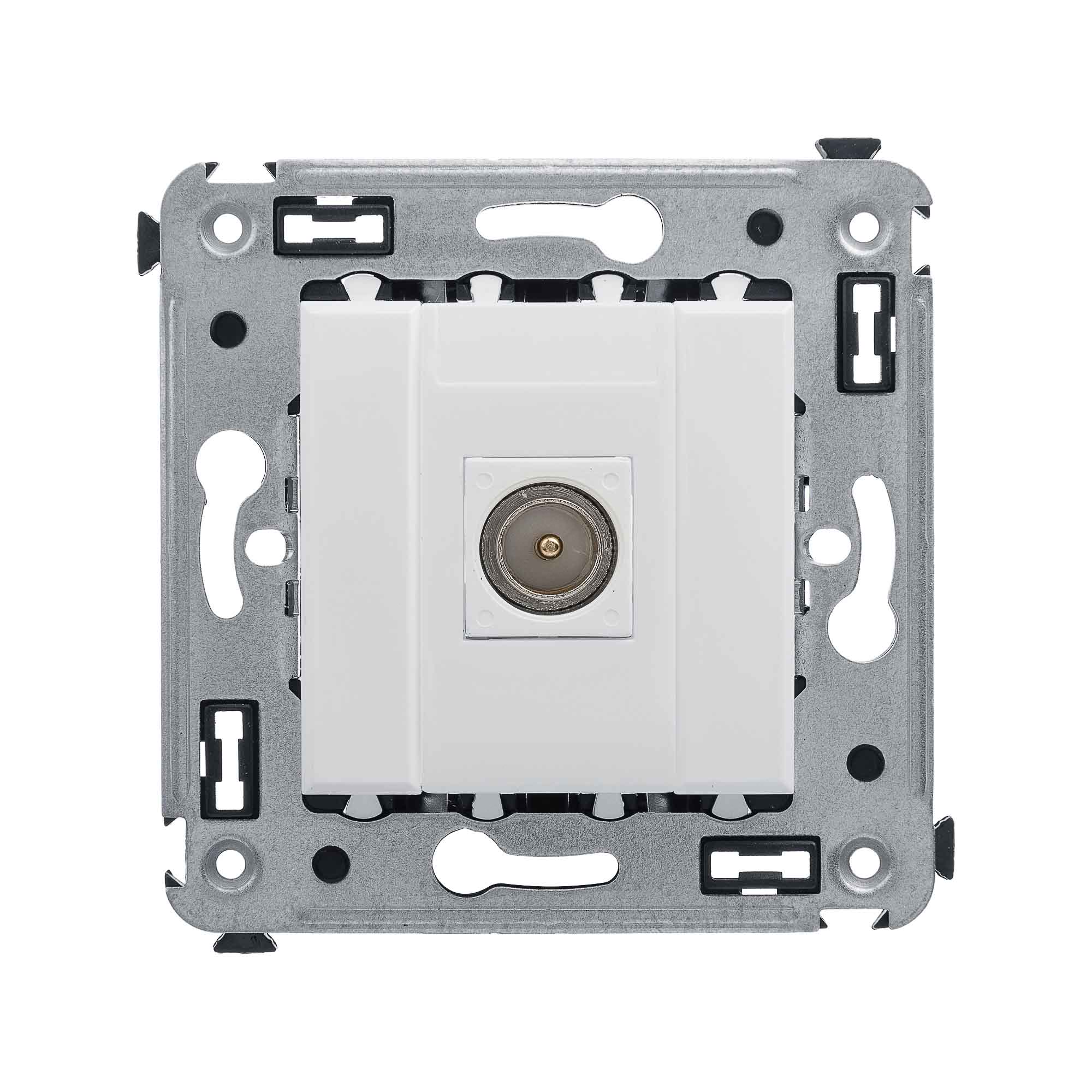 Одиночные телевизионные розетки предназначены для скрытой установки в стенах и применяются для подключения телевизионного кабеля. TV-розетки производства ДКС рассчитаны на частоту до 2400 Гц. Материал – металл, пластик. Пластиковые части имеют цвет "Белое облако" – это универсальный, легкий и воздушный оттенок, смягчающий цветовые сочетания и несущий чувство покоя. Количество модулей в изделии – 2.
