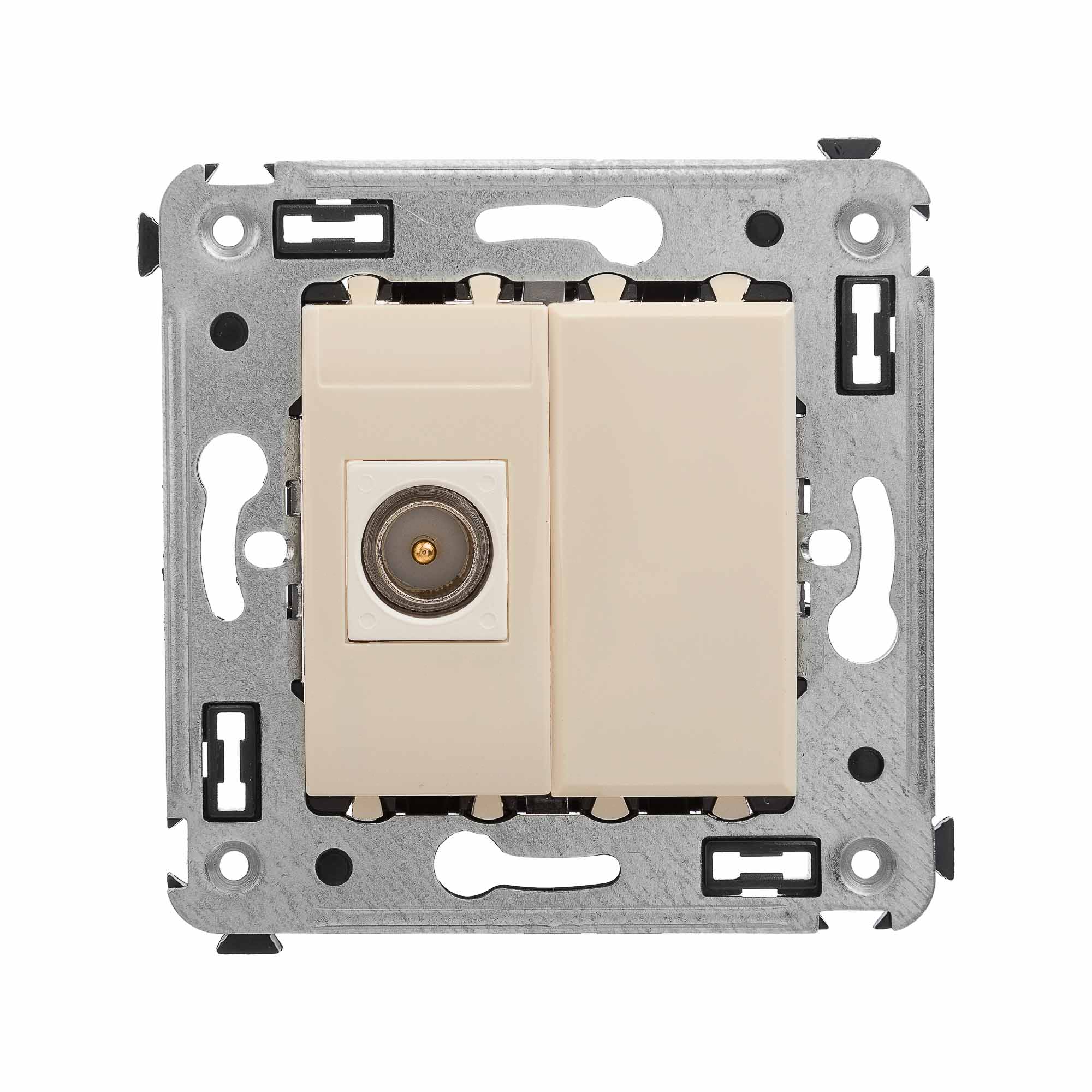 Одиночные телевизионные розетки предназначены для скрытой установки в стенах и применяются для подключения телевизионного кабеля. TV-розетки производства ДКС рассчитаны на частоту до 2400 Гц. Материал – металл, пластик. Пластиковые части имеют цвет "Ванильная дымка" – это нежный, теплый пастельный оттенок, идеально сочетающийся со светлыми оттенками и теплой цветовой гаммой, несущий ощущение уюта. Количество модулей в изделии – 2.