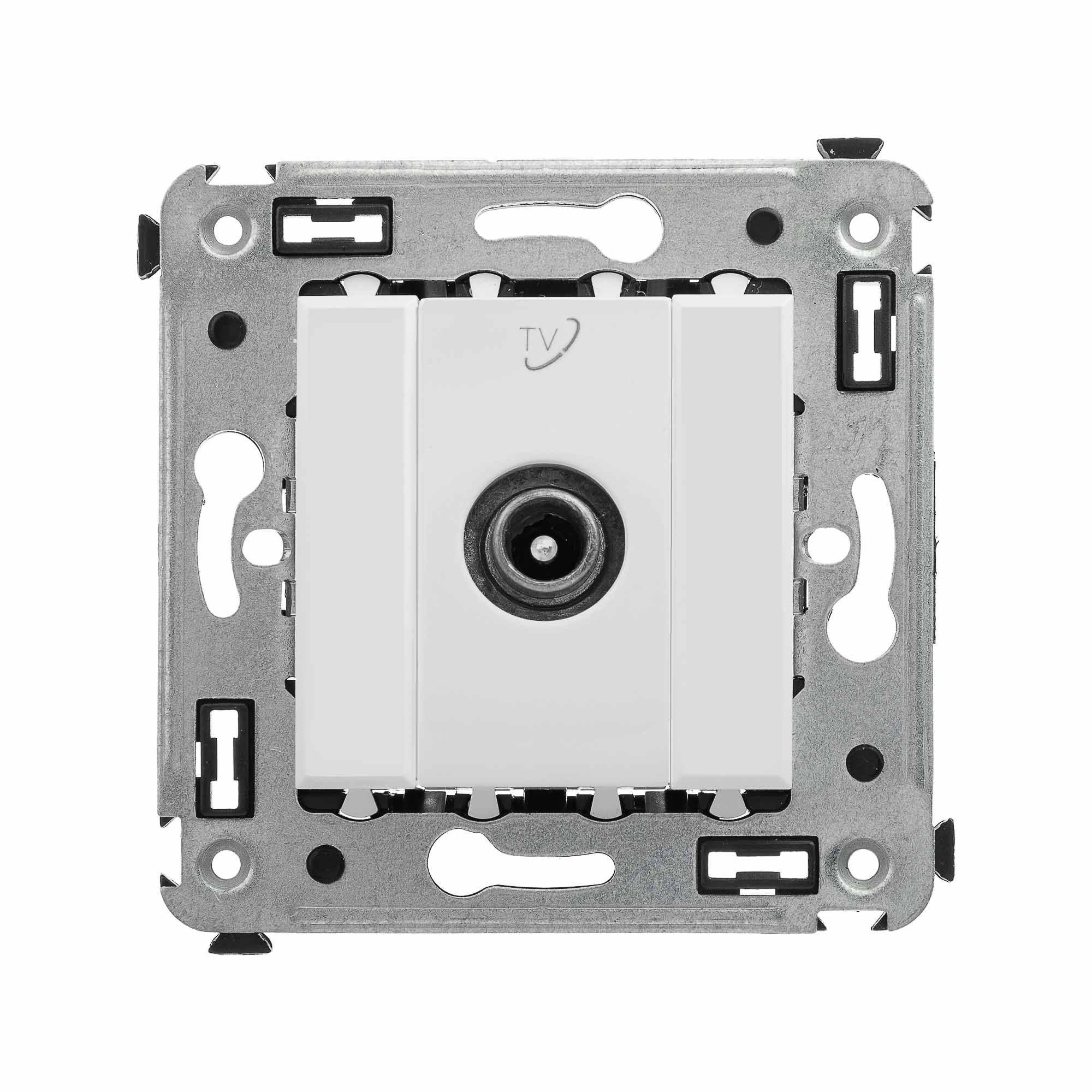 Проходные телевизионные розетки предназначены для скрытой установки в стенах и применяются для подключения телевизионного кабеля. TV-розетки производства ДКС рассчитаны на частоту до 2400 Гц. Материал – металл, пластик. Пластиковые части имеют цвет "Белое облако" – это универсальный, легкий и воздушный оттенок, смягчающий цветовые сочетания и несущий чувство покоя. Количество модулей в изделии – 2. <br>