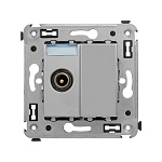 Розетка TV проходная в стену. Назначение: для монтажа в подрозеточные коробки глубиной не менее 45 мм (код 59301); подключение телевизионного кабеля к телевизору. Характеристики: винтовые зажимы; диапазон рабочих частот 4–2400 МГц; затухание <1 дБ. Кол-во модулей: 2. Цвет: "Закаленная сталь" <br>