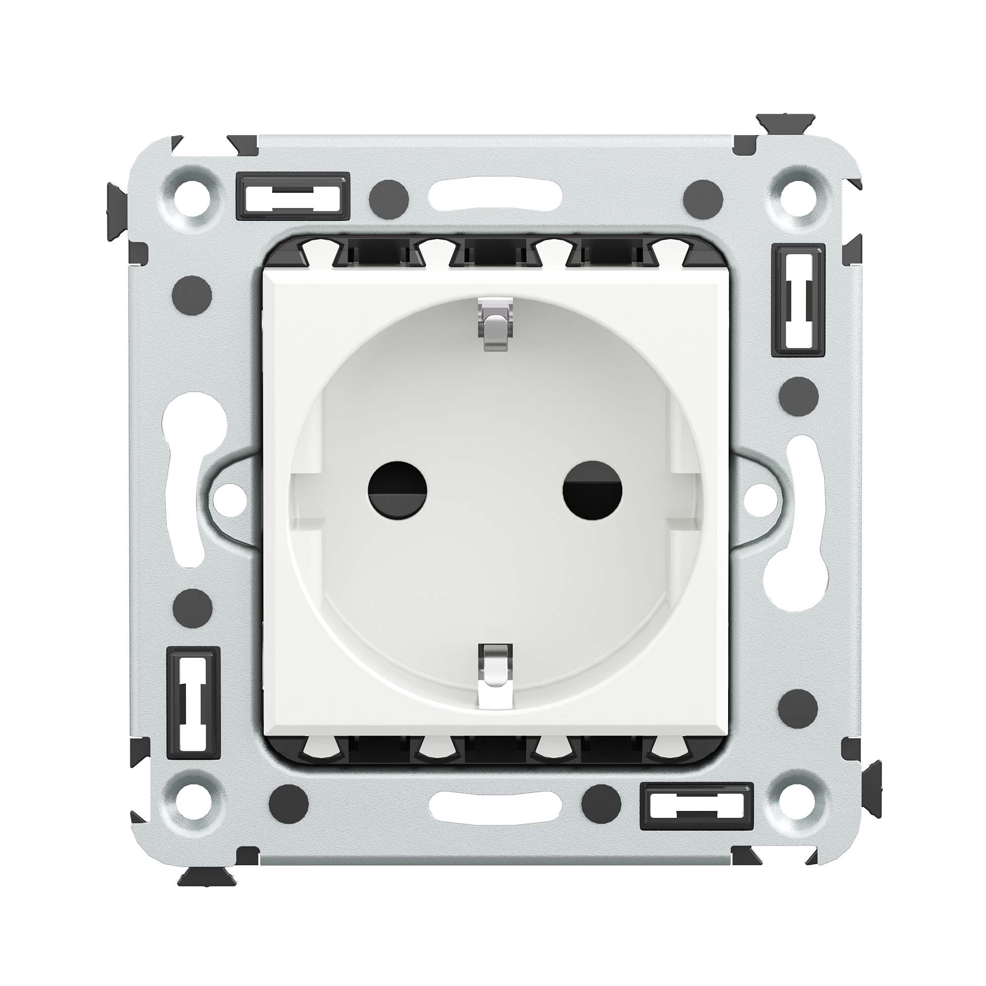 Розетка 2P+E от ДКС – это однофазная розетка с заземлением, служит для подключения различных электроприборов. Изделие предназначено для скрытого монтажа в стену и рассчитано на номинальное напряжение 230 В и номинальный ток 16 А. Особый механизм фиксации позволяет легко, но прочно зафиксировать ЭУИ. Материал: металл, термопласт. Пластиковые части устройства имеют цвет "Белое облако" – это благородный светлый тон, который отлично сочетается с любыми оттенками и вписывается в любой интерьер. Количество модулей – 2. <br>