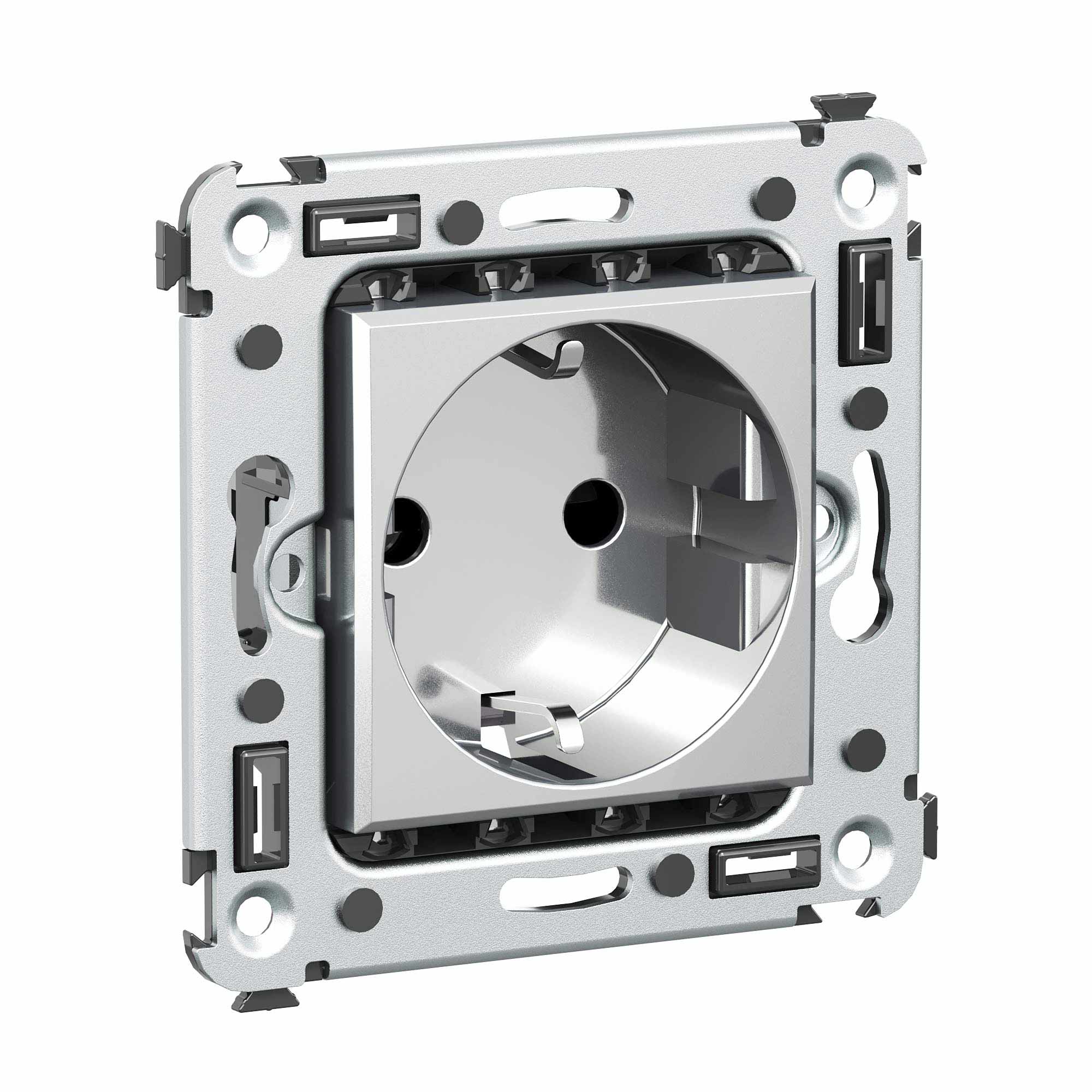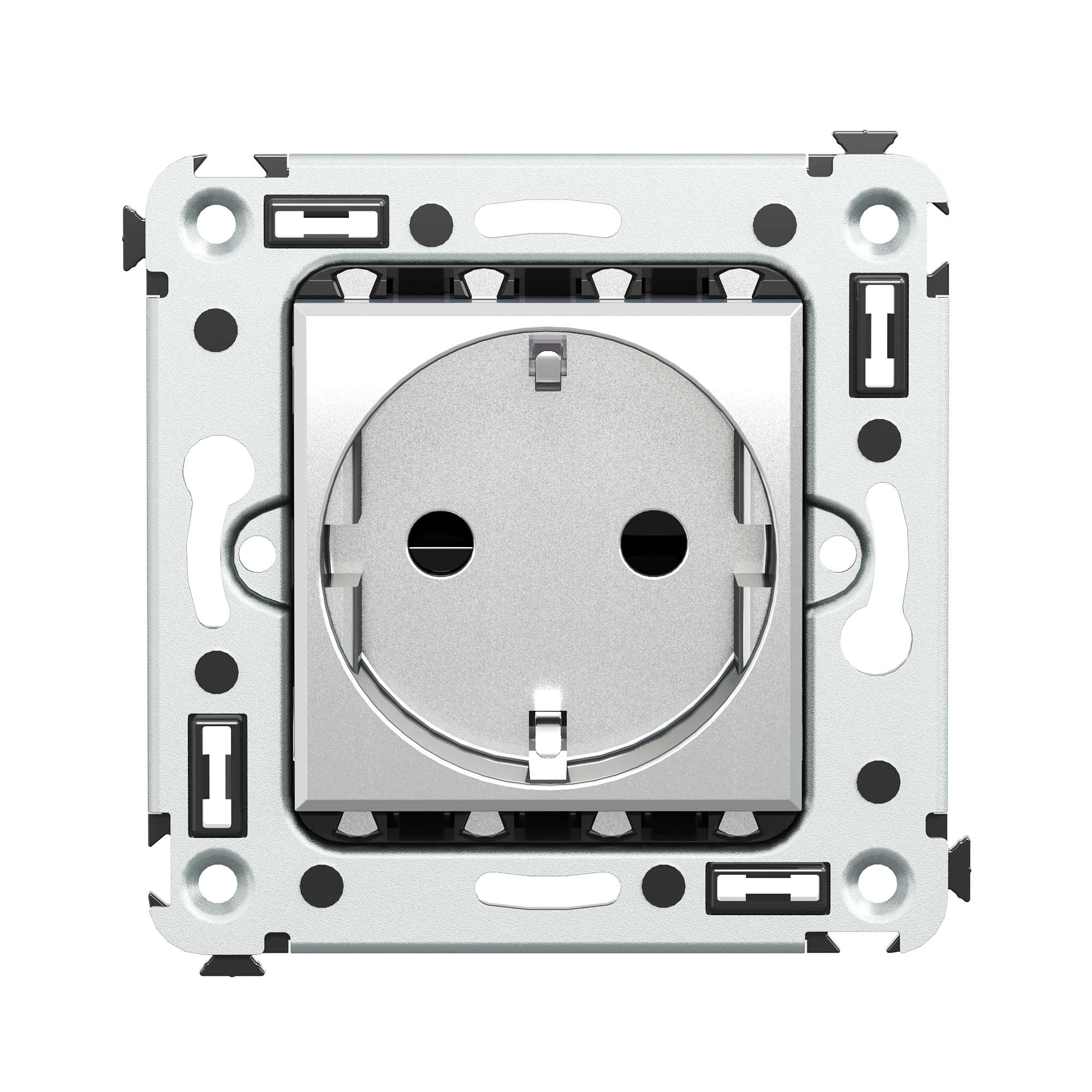 Розетка 2P+E – это однофазная розетка с заземлением. Изделие предназначено для скрытого монтажа в стену и может применяться как в жилых, так и в коммерческих или производственных помещениях. Номинальное напряжение – 230 В, номинальный ток – 16 А. Материал: металл, термопласт. Пластиковые элементы устройства имеют стильный оттенок "Закаленная сталь" и сдержанный матовый блеск, придающий электроустановочному изделию утонченность и изящество. <br>