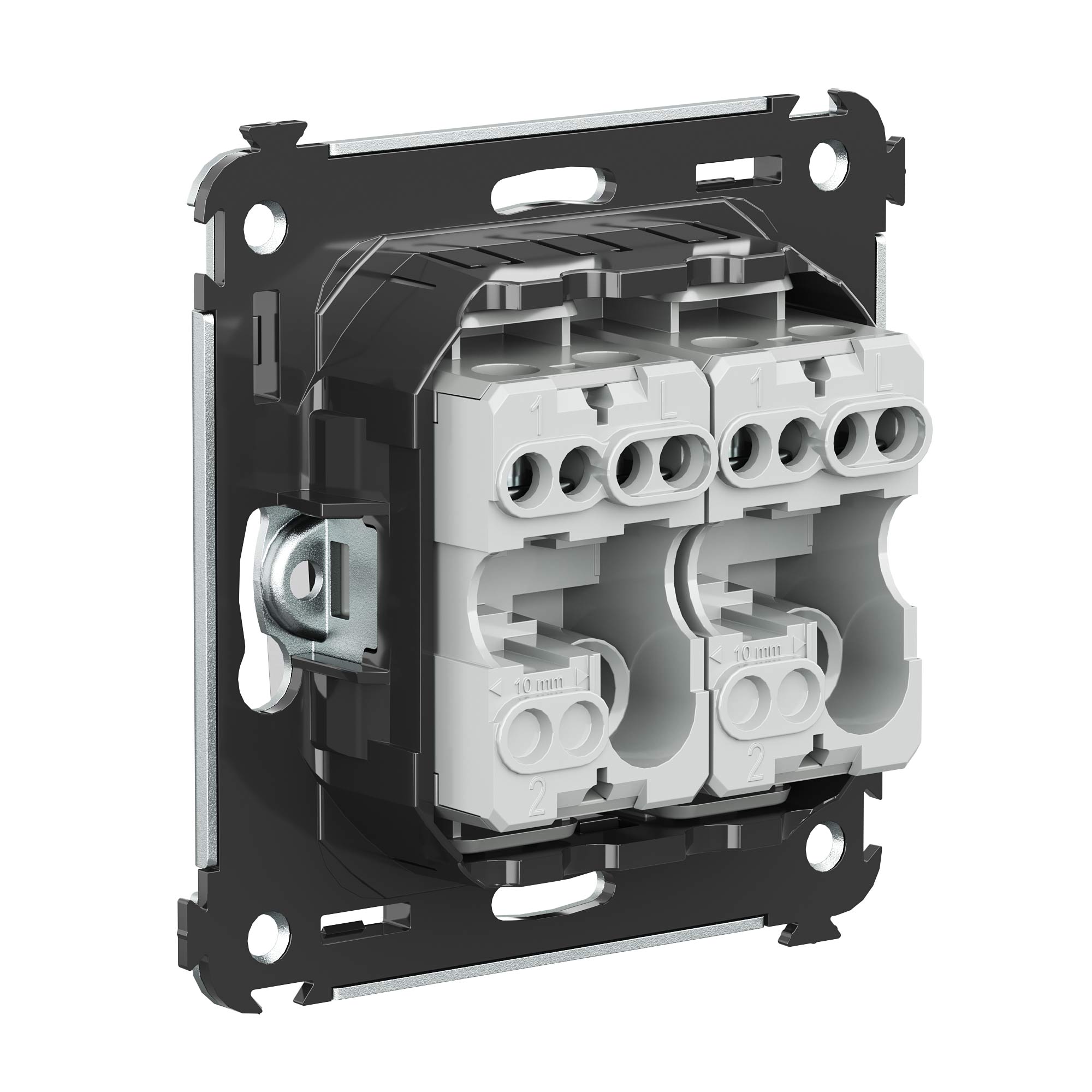 Задача двухклавишного выключателя – управление двумя контурами освещения из одной точки. Выключатели из серии ЭУИ "Avanti" предназначены для скрытого размещения в стене. Номинальное напряжение выключателя – 230 В, номинальный ток – 16 А.
