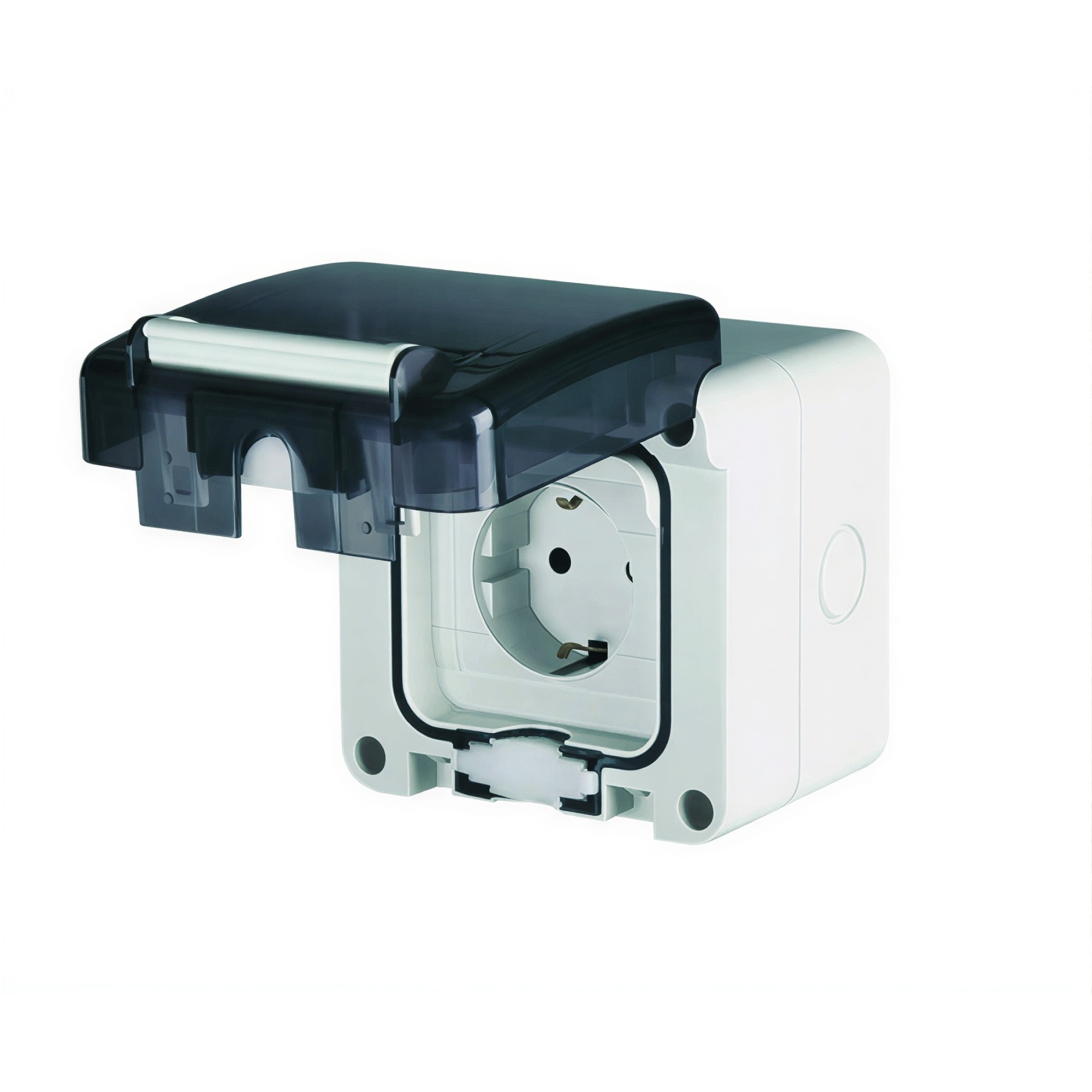 Накладные розетки с крышкой от ДКС оборудованы надежным заземлением и шторками безопасности, которые предотвращают случайное попадание посторонних предметов внутрь гнезда. Это обеспечивает электробезопасность при эксплуатации как в домах, так и на производственных объектах.<br/><br/>Розетки с защитой IP66 от ДКС рассчитаны на номинальный ток 16А и напряжение 250В. Это универсальное решение для бытовых и производственных нужд. Использование сертифицированных материалов и высокоточная сборка обеспечивают долгий срок службы и устойчивость к механическим и атмосферным воздействиям.<br/><br/>Влагозащищенные розетки оснащены скрытым крепежом для безопасности. Они подходят для установки в ванных комнатах, наружных стенах зданий, промышленных предприятиях.
