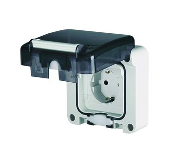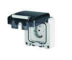 Силовая розетка с повышенной защитой от проникновения воды/пыли стандарта DIN 49440. 250 В. Тип 2P+E. Ток 16 А. Размер основания 95×95 мм.