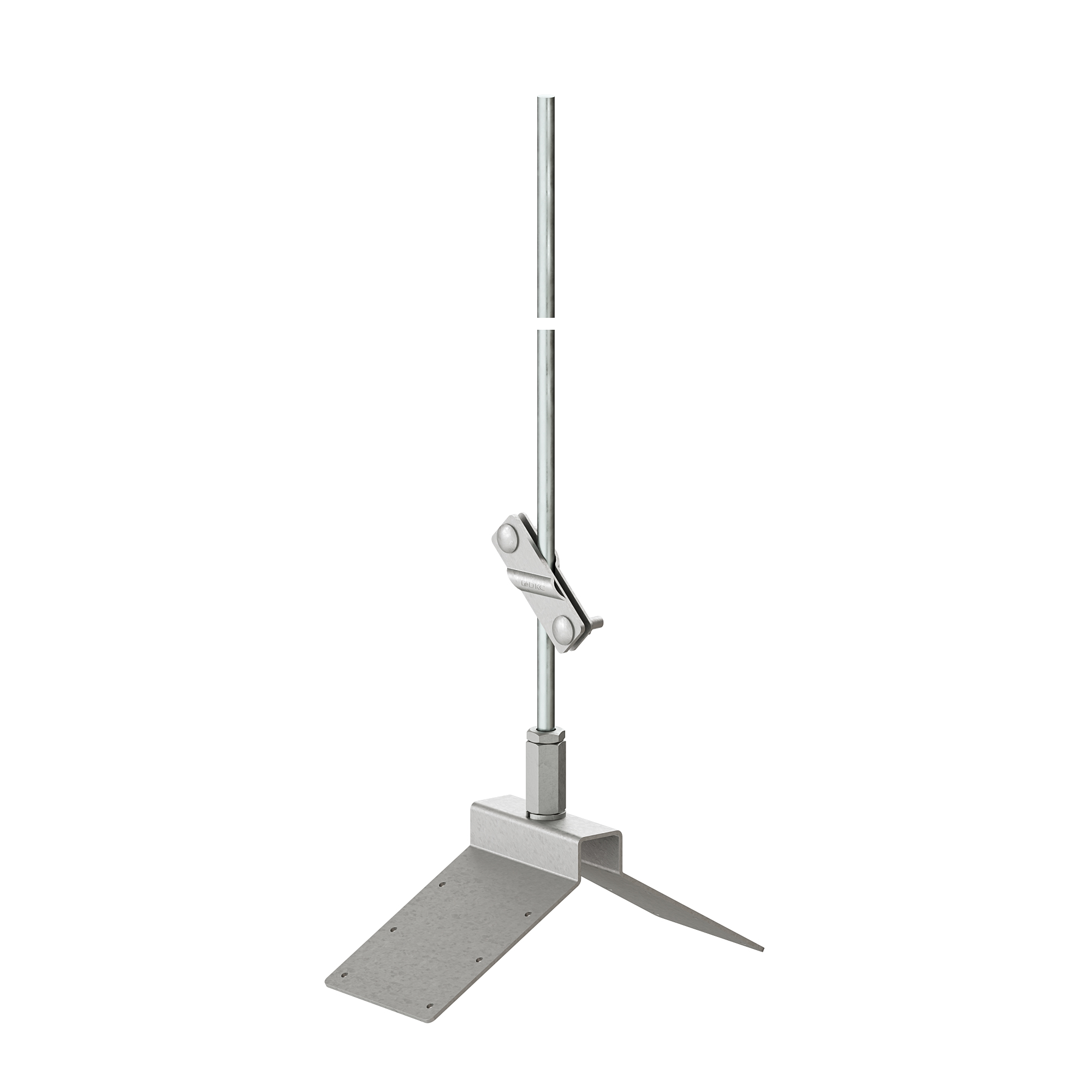 Коньковый молниеприемник с угловым зажимом устанавливается на острый конек кровли с помощью саморезов. В комплект молниеприемника входит установочный соединитель для подключения токоотвода - круглого 8-10 мм или плоского 25-50 мм проводника. Длина - 2000 мм.