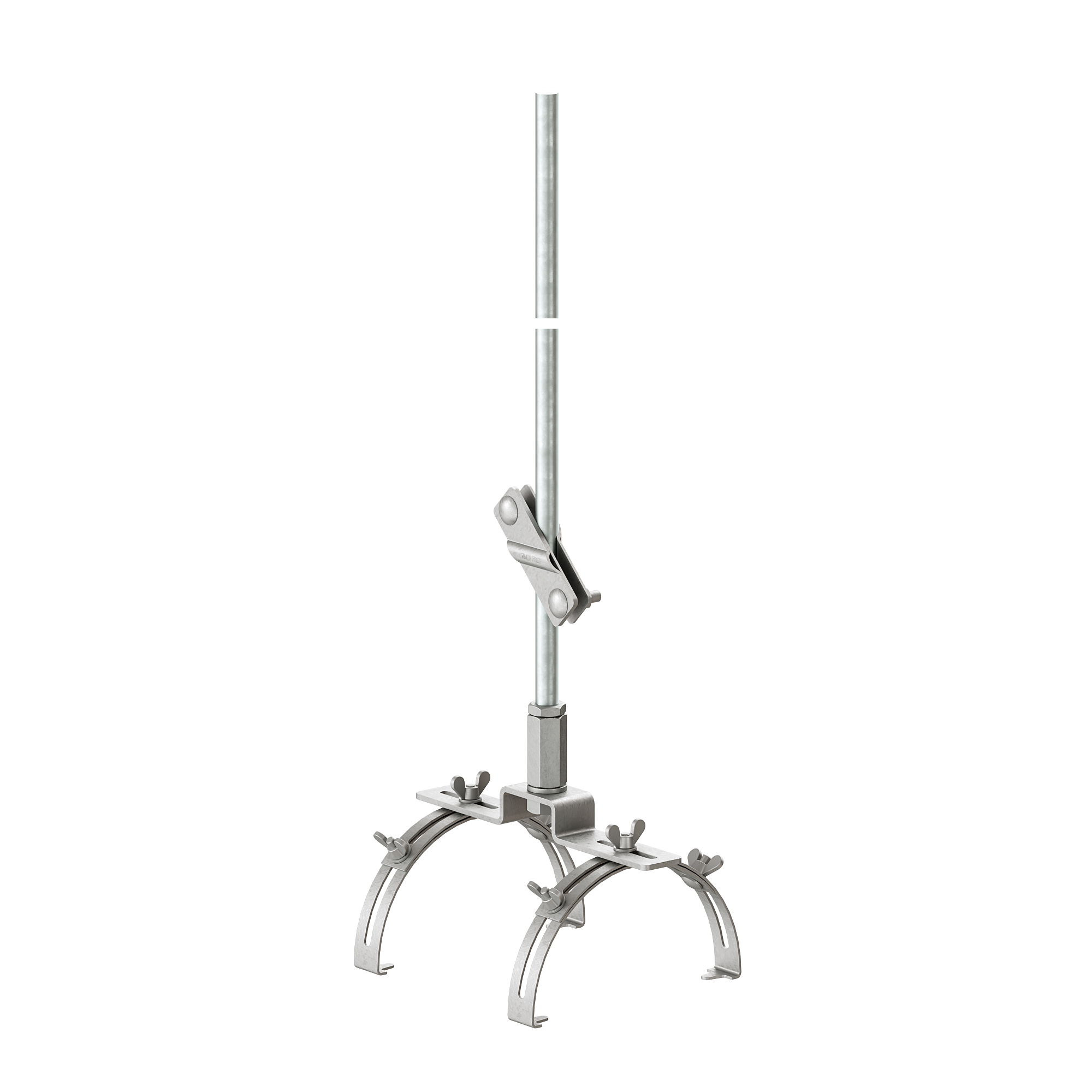 Коньковый молниеприемник с двойным зажимом устанавливается на круглый конек кровли. В комплект молниеприемника входит установочный соединитель для подключения токоотвода - круглого 8-10 мм или плоского 25-50 мм проводника. Длина - 1000 мм, диапазон зажима - 125-205 мм.