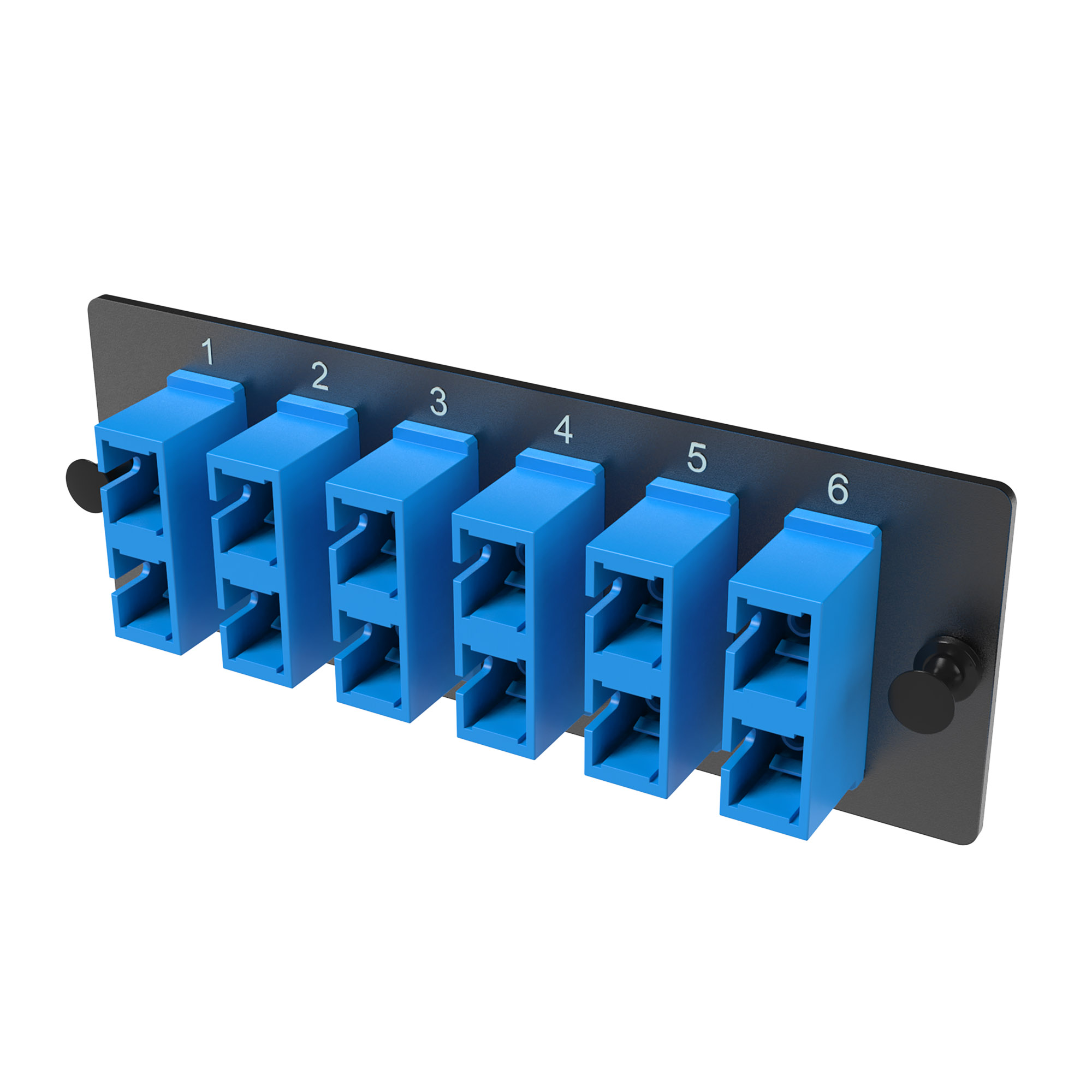 Адаптерная планка с установленными 6xSC Duplex адаптерами (цвет адаптера - синий), OS2, 1 HU