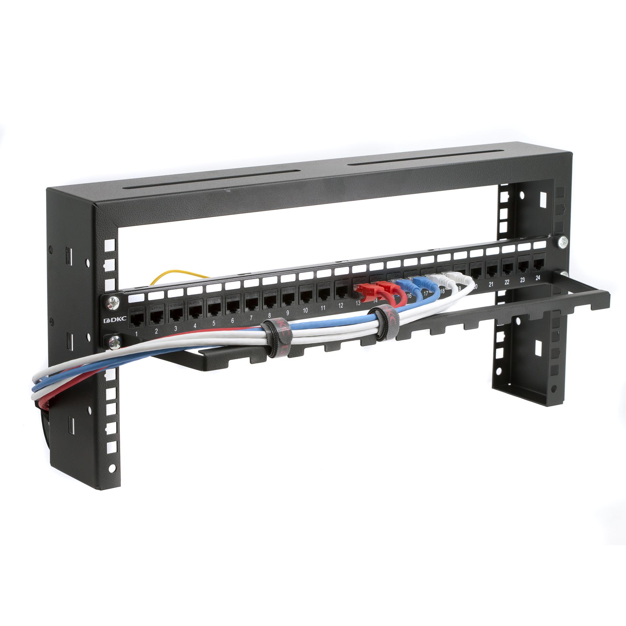 Компактный горизонтальный кабельный организатор 0U предназначен для укладки излишков длины коммутационных или электрических кабелей, применяемых в IT-корпусах. Устанавливается вместе с коммутационной панелю на нижнюю или верхнюю пару крепежных винтов, не занимая юнитовое пространство шкафа. Органайзер имеет отверстия шириной 20 мм, что позволяет фиксировать кабели хомутами на тканевой основе (типа Velcro) шириной до 20 мм. Полимерно-порошковая технология окрашивания обеспечивает прочноcть лакокрасочного покрытия и его устойчивость к сколам и царапинам. В комплект поставки входят крепежные элементы (винт М6х14, шайба, закладная гайка). Цвет - чёрный (RAL9005)