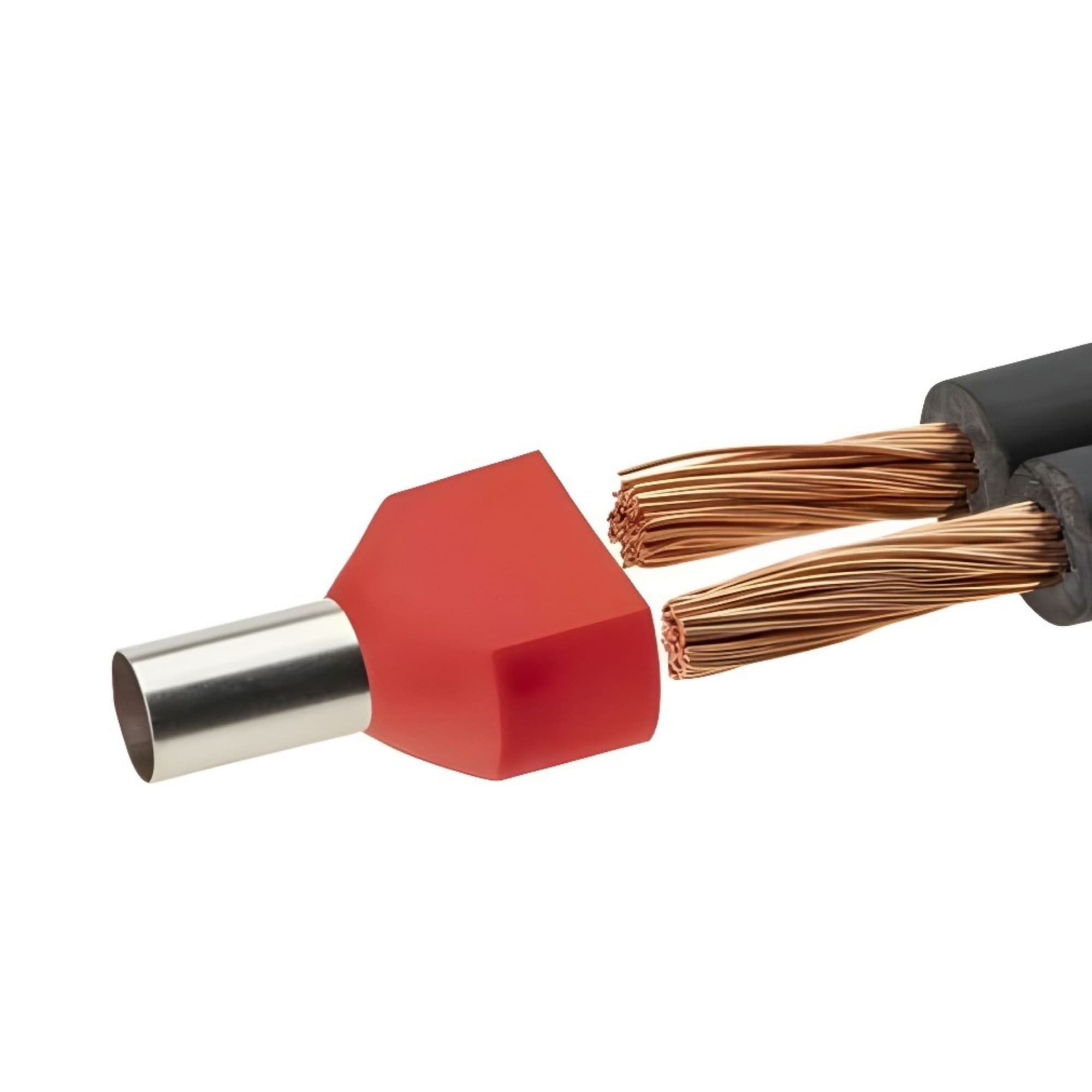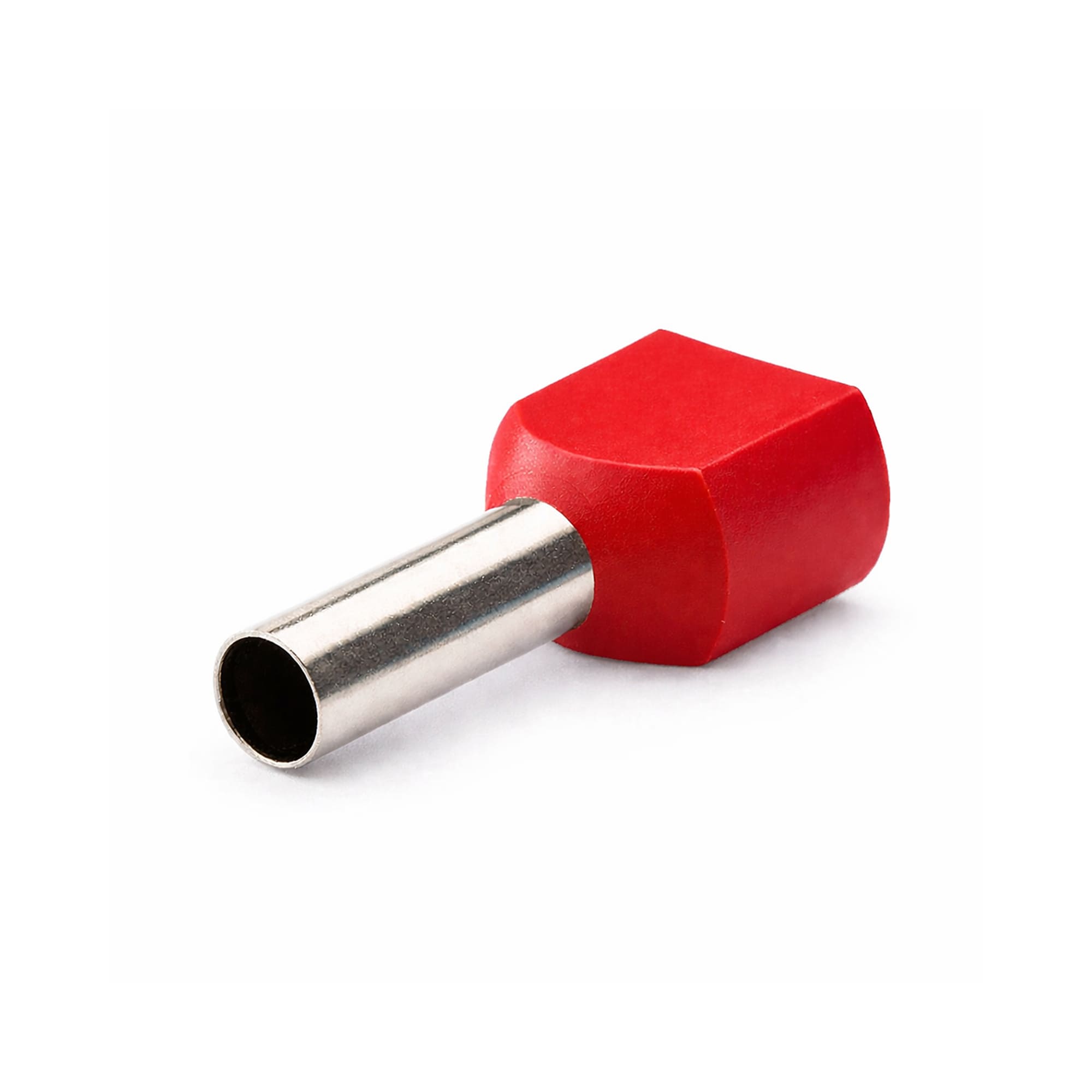 Наконечники-гильзы двойные (НШВИ2) предназначены для оконцевания многожильных сдвоенных проводников одинакового сечения класса гибкости 3 и выше с последующим подключением к пружинным или винтовым зажимам оборудования. Наконечники-гильзы двойные НШВИ-2 имеют широкую сферу применения. Активно используются при подключении автоматических выключателей, УЗО и другого оборудования для автоматизации и распределения. Форма изолированной манжеты и медной гильзы наконечников НШВИ-2 рассчитана на одновременный монтаж и подключение двух проводников. Длина контактной гильзы - 8 мм. Сечение провода - 1 мм2. Материал гильзы - медь M0 (содержание меди 99,99%). Цвет - красный.