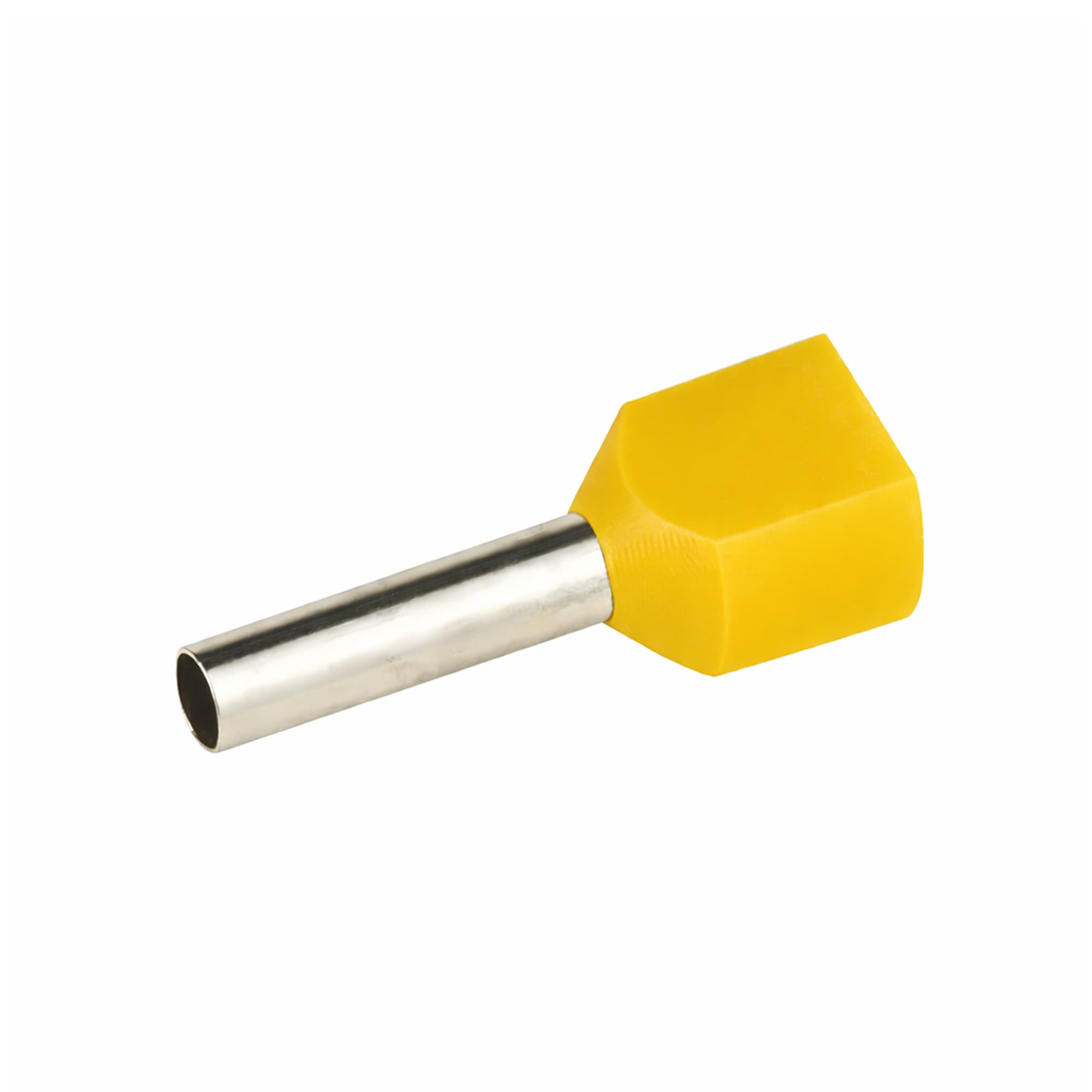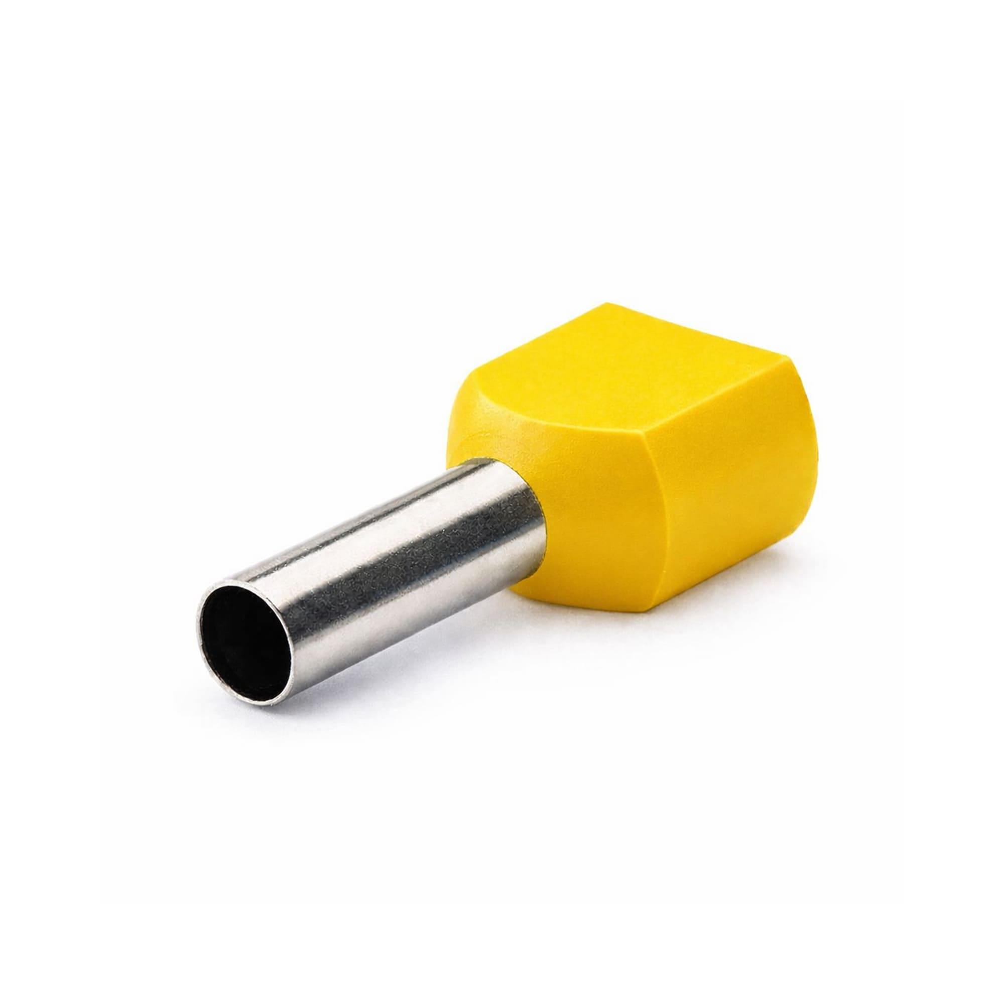 Наконечники-гильзы двойные (НШВИ2) предназначены для оконцевания многожильных сдвоенных проводников одинакового сечения класса гибкости 3 и выше с последующим подключением к пружинным или винтовым зажимам оборудования. Наконечники-гильзы двойные НШВИ-2 имеют широкую сферу применения. Активно используются при подключении автоматических выключателей, УЗО и другого оборудования для автоматизации и распределения. Форма изолированной манжеты и медной гильзы наконечников НШВИ-2 рассчитана на одновременный монтаж и подключение двух проводников. Длина контактной гильзы - 14 мм. Сечение провода - 6 мм2. Материал гильзы - медь M0 (содержание меди 99,99%). Цвет - желтый.