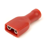 Изолированный кабельный наконечник быстрого соединения (РППИ-М) предназначен для оконцевания кабеля в электрических цепях переменного и постоянного тока напряжением до 600 В. Материал контактной части – электротехническая медь, материал изоляции - ПВХ. Луженое покрытие обеспечивает защиту от коррозии. Класс горючести - V0 по стандарту UL 94. Сечение: 0,25–1,5 мм². Размер клеммы 6,3×0,8 мм. Длина лопатки - 7,8 мм. Форма контактной части - "мама". Цвет - красный.