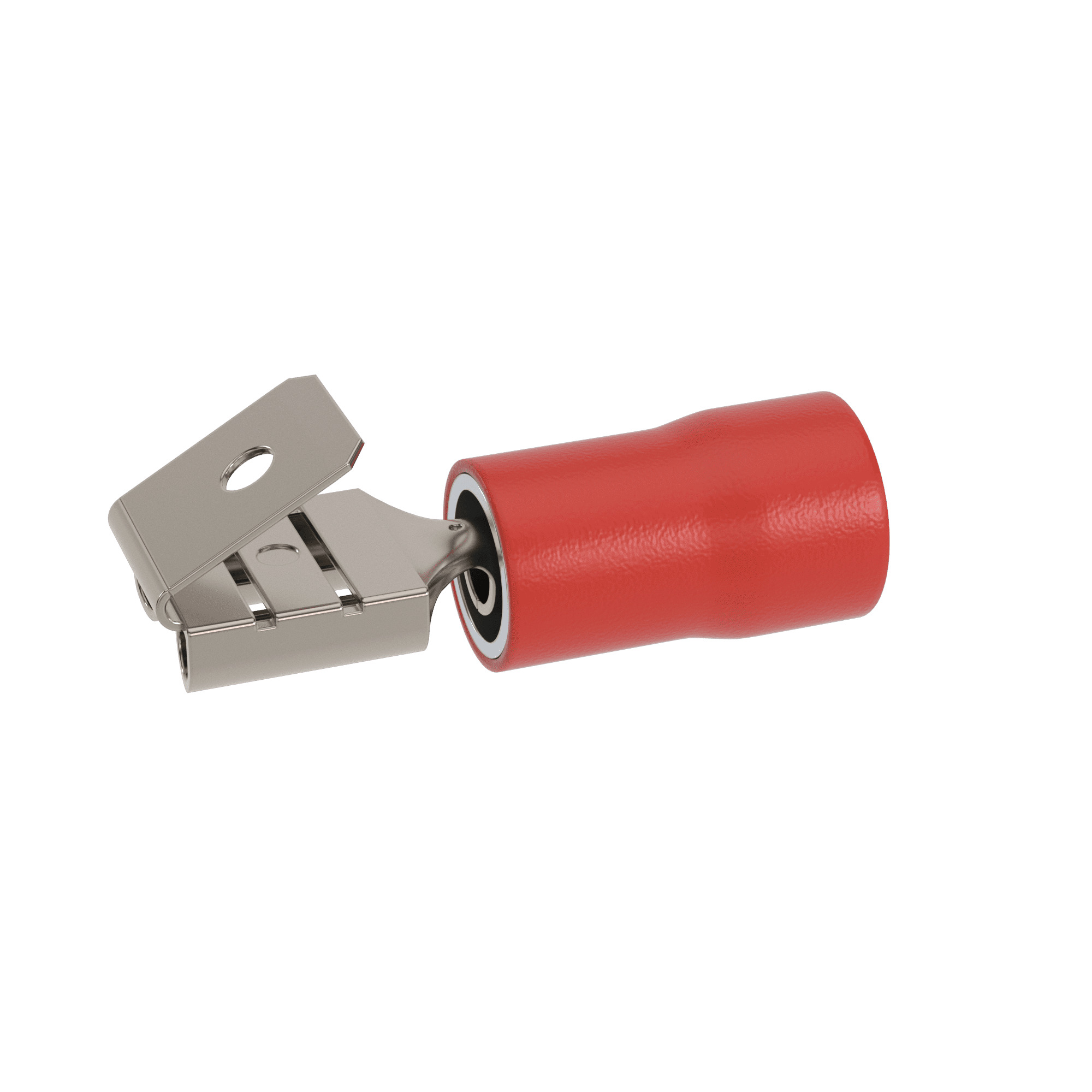 Предназначен для оконцевания медных/алюминиевых многопроволочных жил кабелей/проводов в электрических цепях переменного/постоянного тока напряжением до 600 В. Контактная часть выполнена из высококачественной меди марки М1. Лужение исключает образование гальванической пары. Внутренняя часть гильзы имеет радиальные насечки, повышающие плотность контакта. Изоляция из ПВХ выдерживает температуру до 85 ⁰C. Класс горючести - V0, стандарт UL 94. Двойная гильза обеспечивает наилучший электрический контакт и повышает виброустойчивость соединения. Рекомендованы для регионов с повышенной сейсмической активностью и на производственных объектах. Цвет - красный. Сечение: 0,5–1,5 мм2. Размер клеммы 6.3×0,8 мм. Длина лопатки - 8 мм. Форма контактной части - "мама/папа".