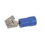 Предназначен для оконцевания медных/алюминиевых многопроволочных жил кабелей/проводов в электрических цепях переменного/постоянного тока напряжением до 600 В. Контактная часть выполнена из высококачественной меди марки М1. Лужение исключает образование гальванической пары. Внутренняя часть гильзы имеет радиальные насечки, повышающие плотность контакта. Изоляция из ПВХ выдерживает температуру до 85 ⁰C. Класс горючести - V0, стандарт UL 94. Двойная гильза обеспечивает наилучший электрический контакт и повышает виброустойчивость соединения. Рекомендованы для регионов с повышенной сейсмической активностью и на производственных объектах. Цвет - синий. Сечение: 1,5-2,5 мм2. Размер клеммы 6.3×0,8 мм. Длина лопатки - 8 мм. Форма контактной части - "мама/папа".