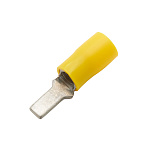 Плоские штыревые наконечники с изолированным фланцем НШПИ предназначены для оконцевания кабеля и проводов с медными жилами сечением от 2.5 до 6 мм² в электрических цепях переменного и постоянного тока, напряжение до 600 В. Материал контактной части – электротехническая медь, материал изоляции - ПВХ. Луженое покрытие обеспечивает защиту от коррозии. Фланец изолирован. Длина контактного штыря - 9 мм. Цвет - желтый.