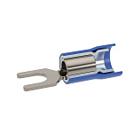 Предназначен для оконцевания медных/алюминиевых многопроволочных жил кабелей/проводов в электрических цепях переменного/постоянного тока напряжением до 600 В. Контактная часть выполнена из высококачественной меди марки М1. Лужение исключает образование гальванической пары. Внутренняя часть гильзы имеет радиальные насечки, повышающие плотность контакта. Изоляция из ПВХ выдерживает температуру до 85 ⁰C. Класс горючести - V0, стандарт UL 94. Двойная гильза обеспечивает наилучший электрический контакт и повышает виброустойчивость соединения. Рекомендованы для регионов с повышенной сейсмической активностью и на производственных объектах. Цвет - синий. Сечение: 1,5-2,5 мм2. Диаметр отверстия клеммы 8,4 мм. Метиз - M8. Форма контактной части - вилка.